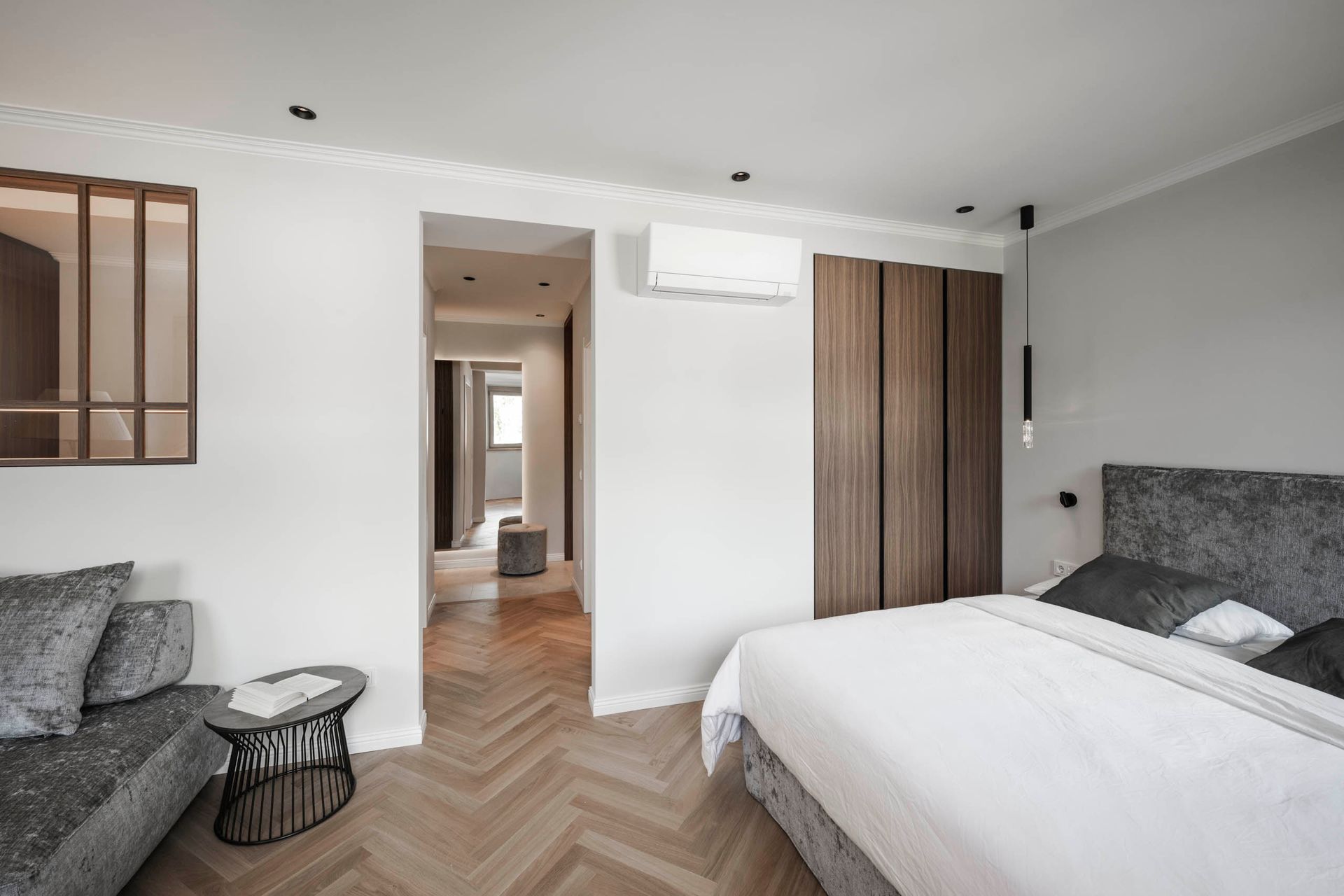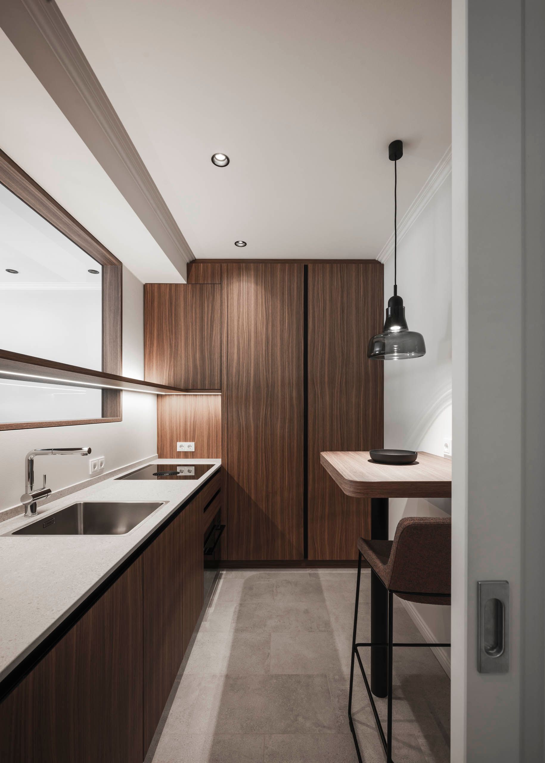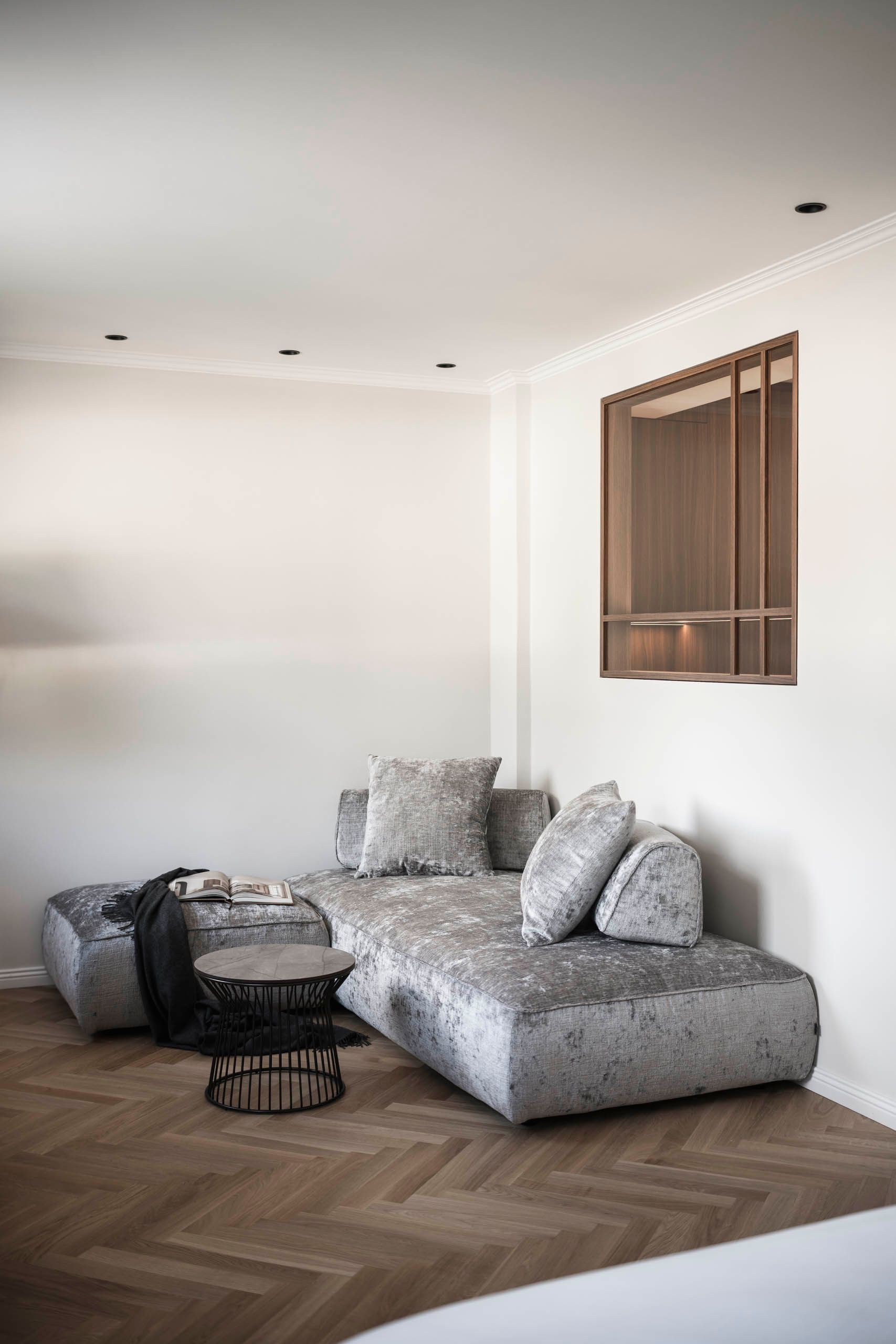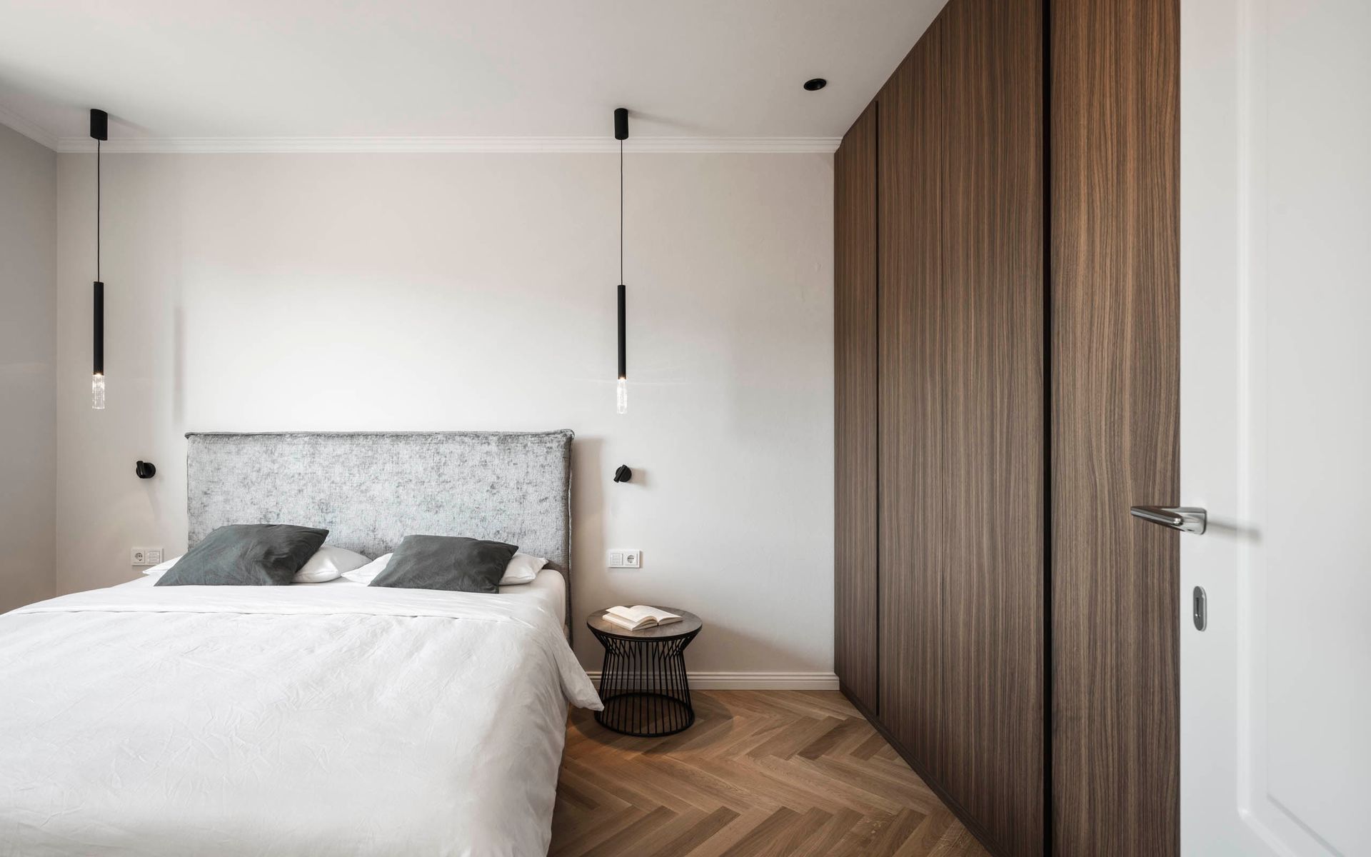 das interior design verbindet klassische eleganz mit zeitgemäßer wohnqualität. feine stuckprofile, ein fischgrätparkett aus eiche und edles nussbaumholz schaffen eine warme, harmonische atmosphäre. hochwertige stoffe und sorgfältig kuratierte beleuchtungselemente setzen stilvolle akzente und verleihen den räumen einen unverwechselbaren charakter.