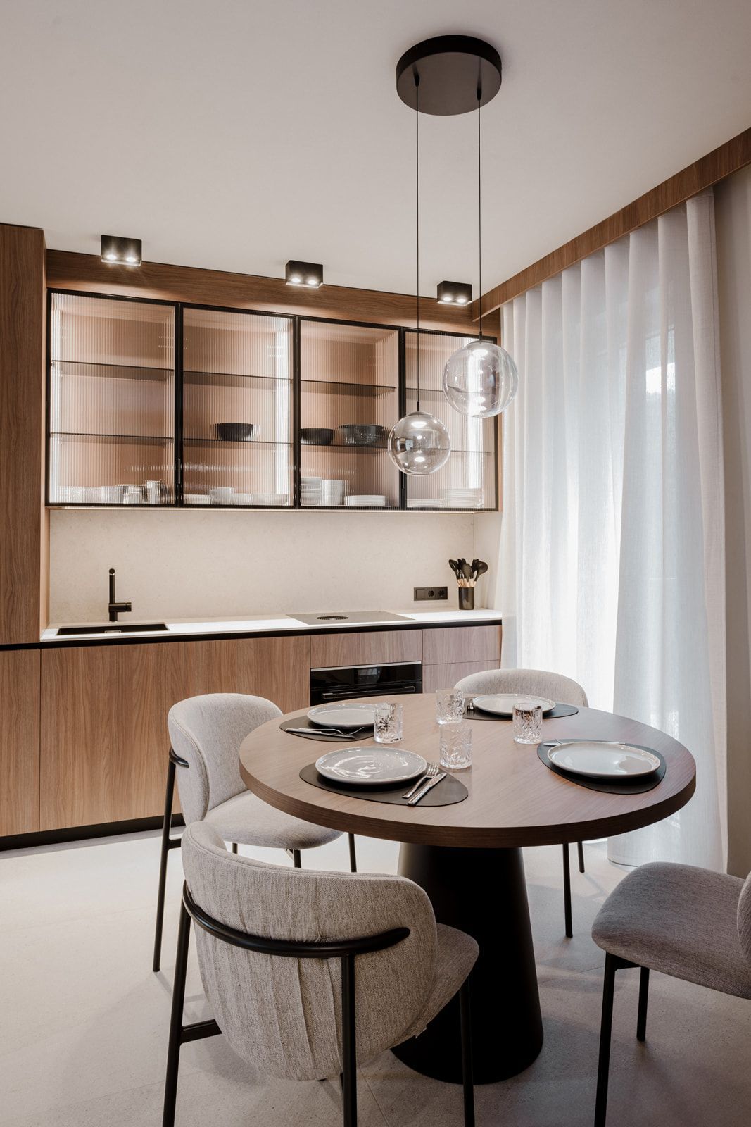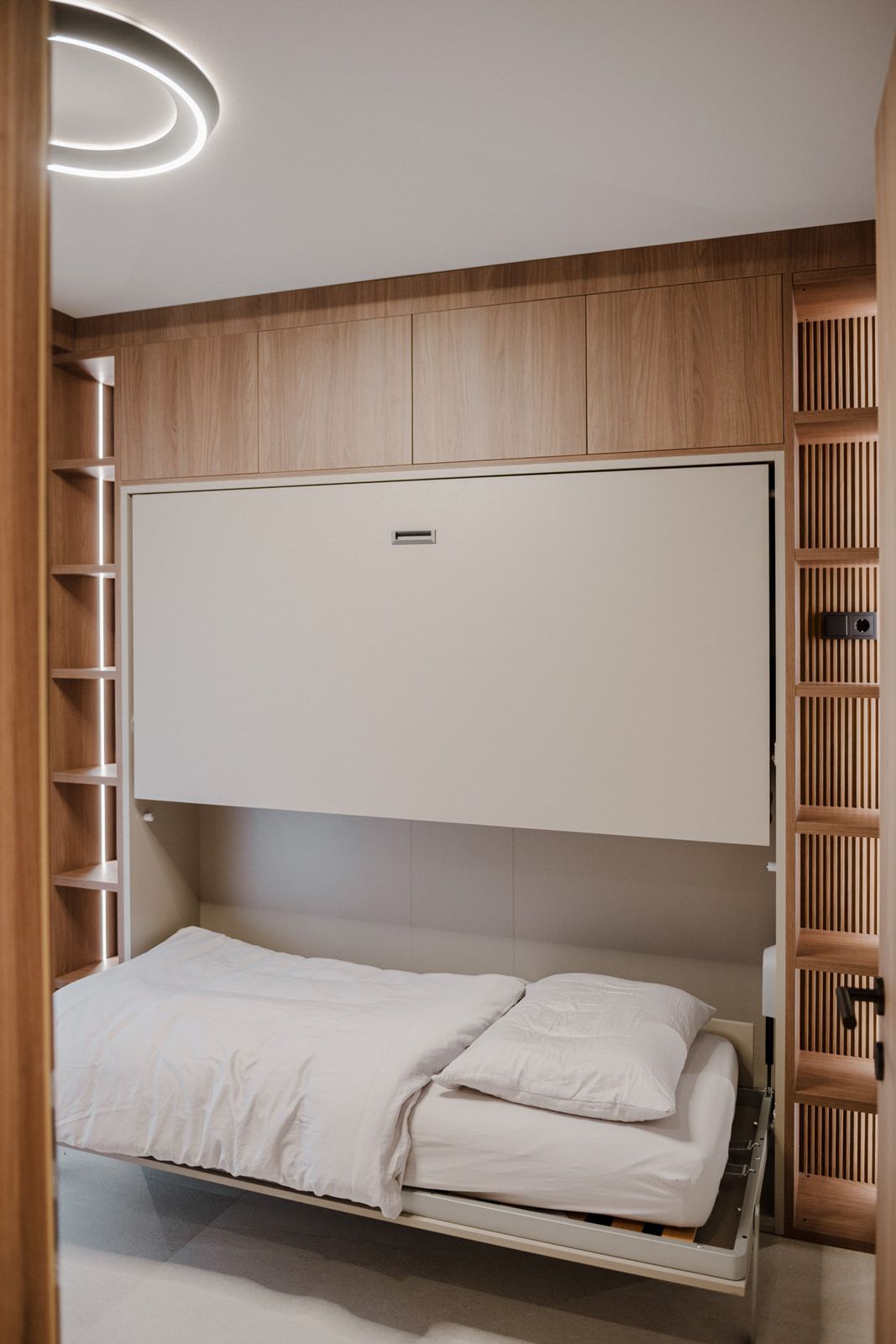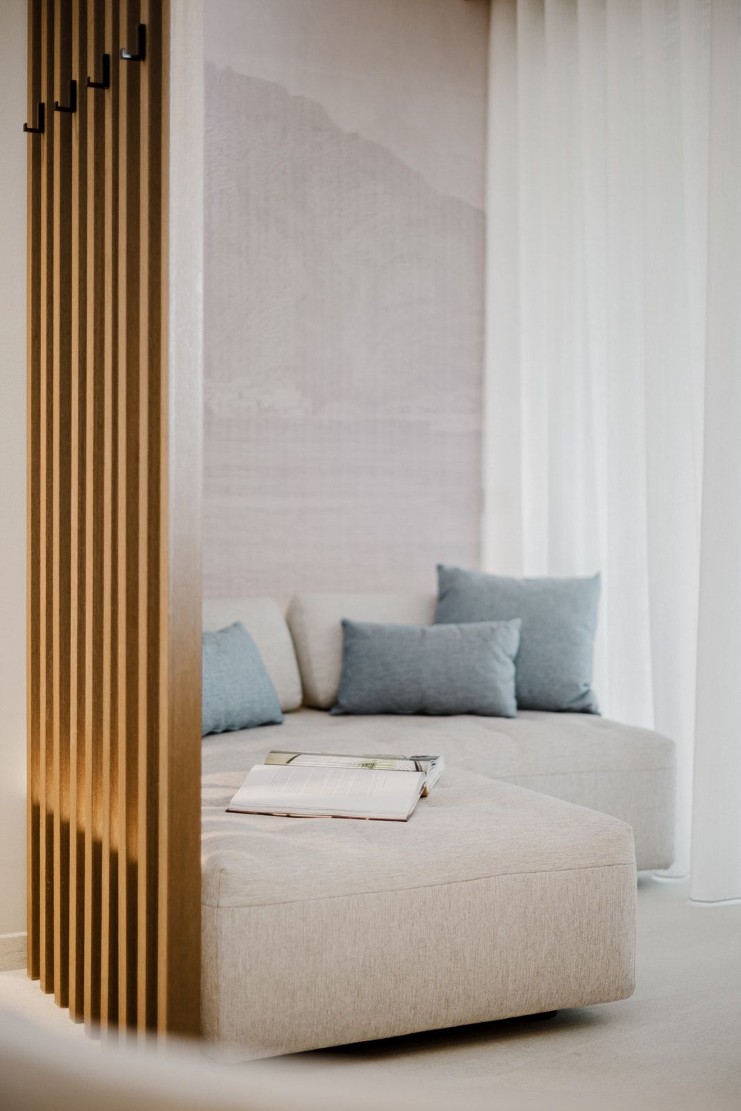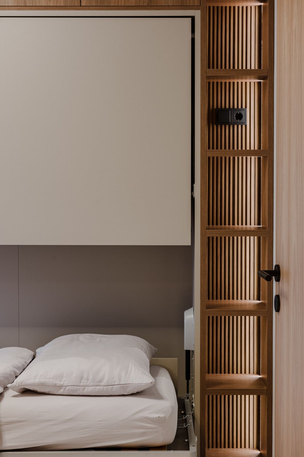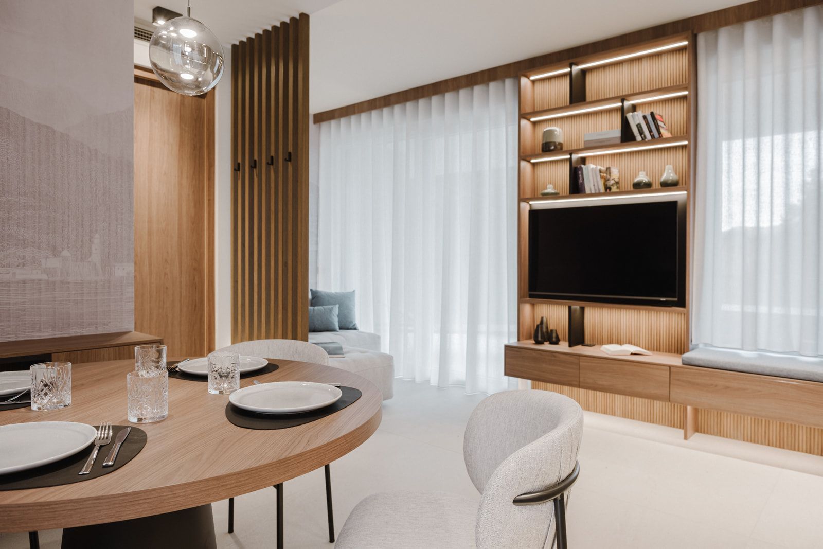 ...einer ferienwohnung in edlem nussholz gepaart mit travertinstein und sommerlichen blautönen