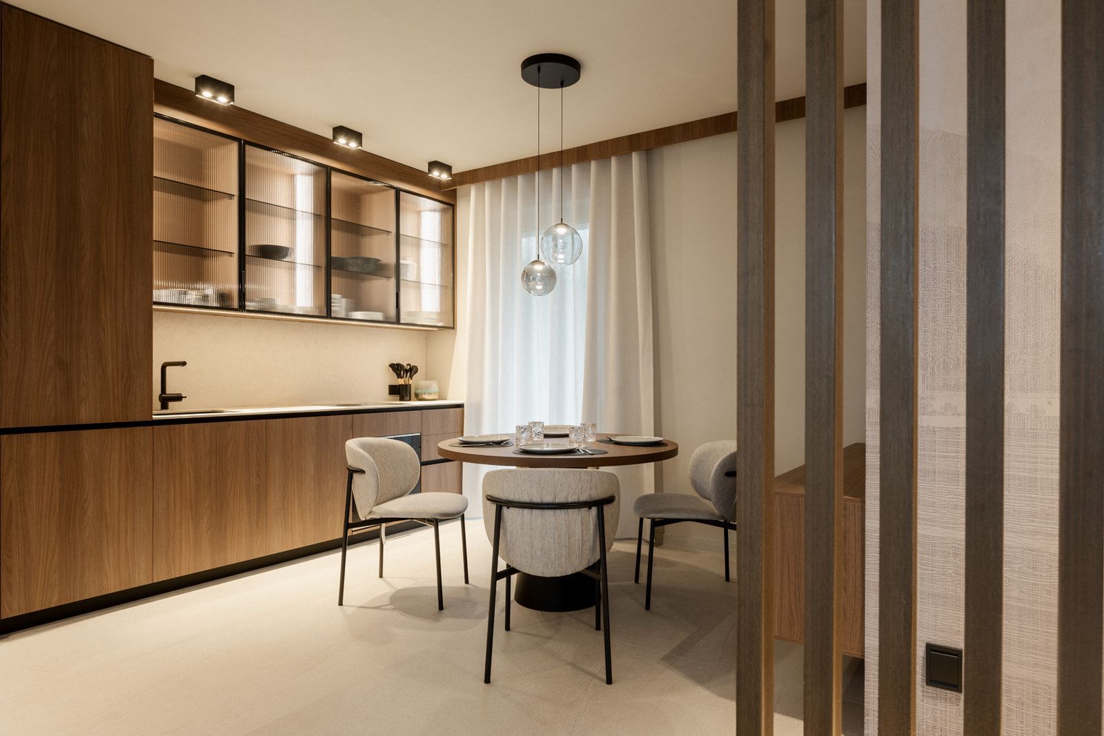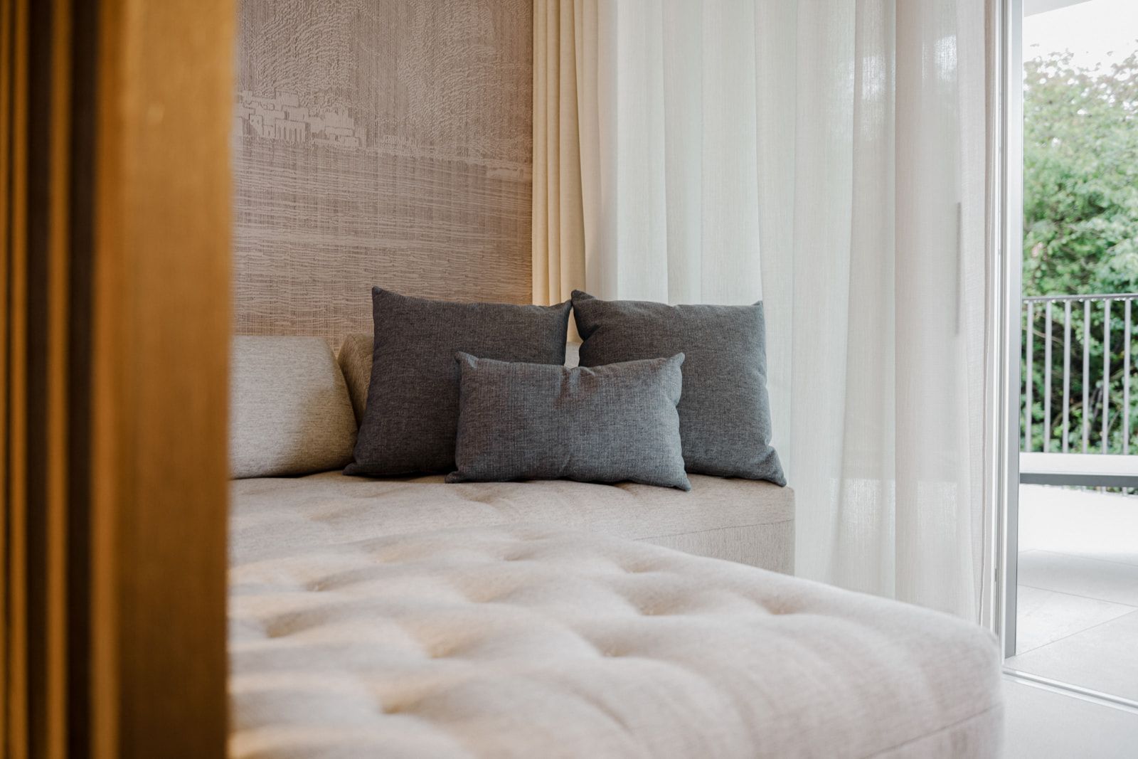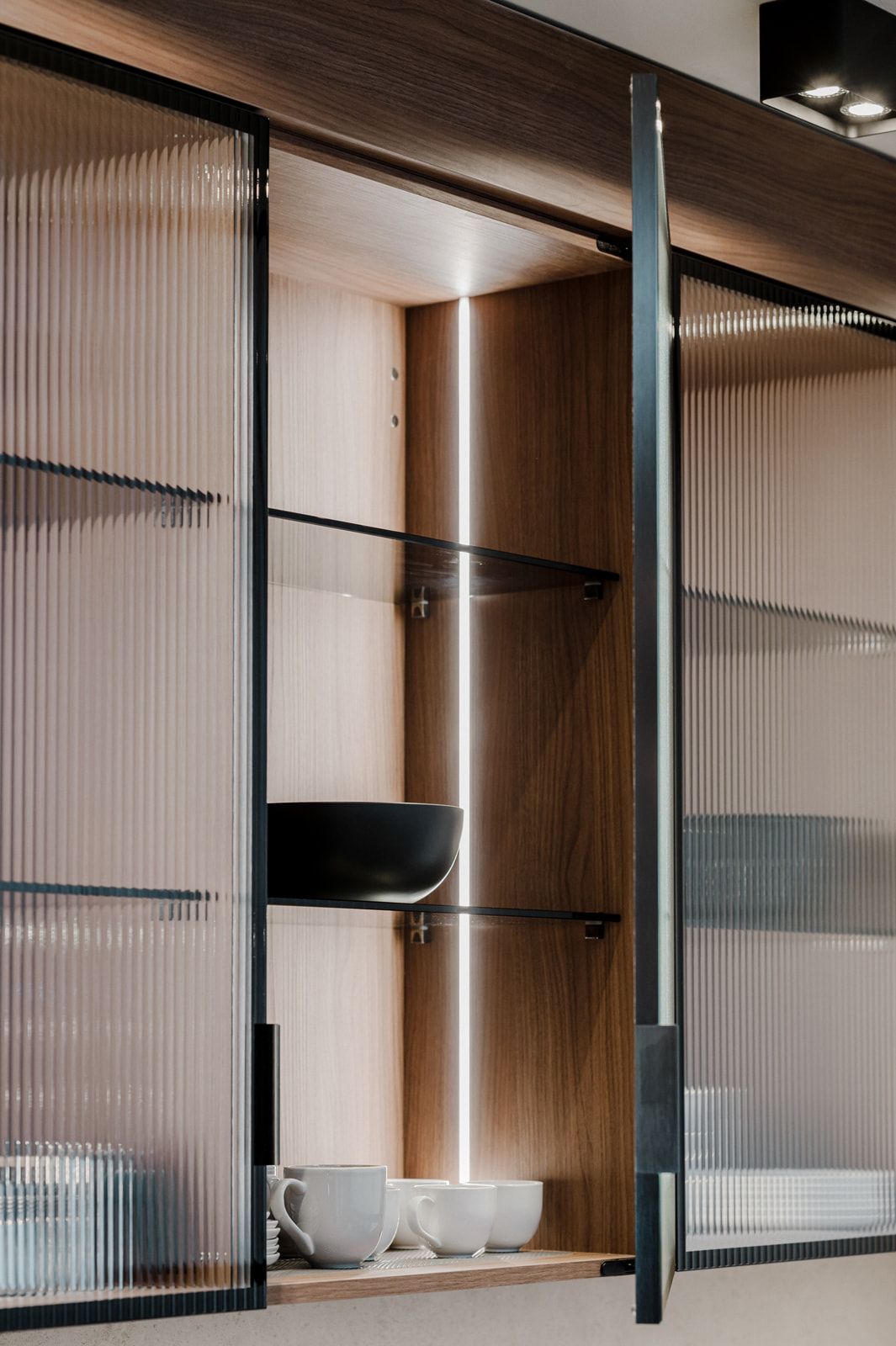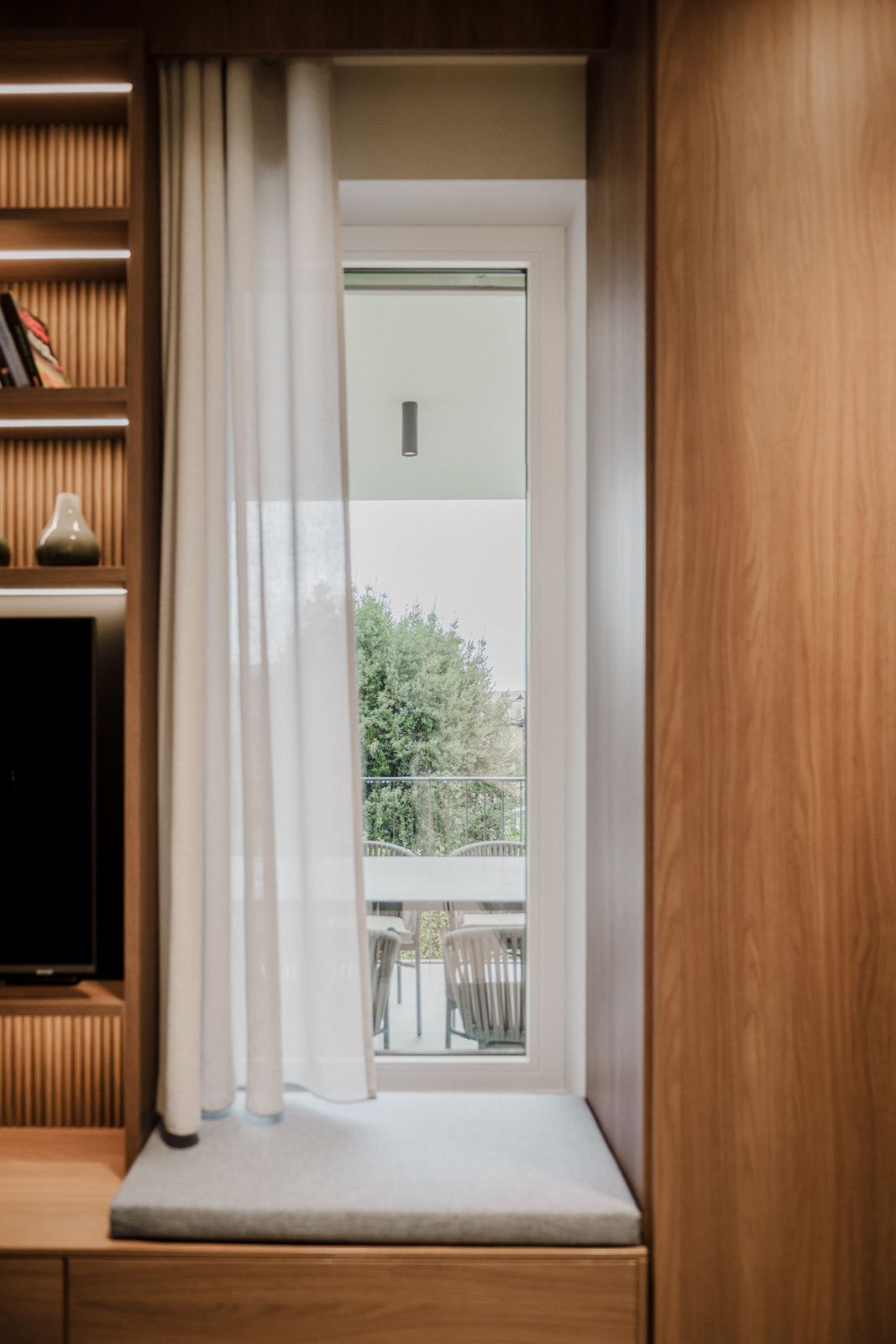 ...einer ferienwohnung in edlem nussholz gepaart mit travertinstein und sommerlichen blautönen