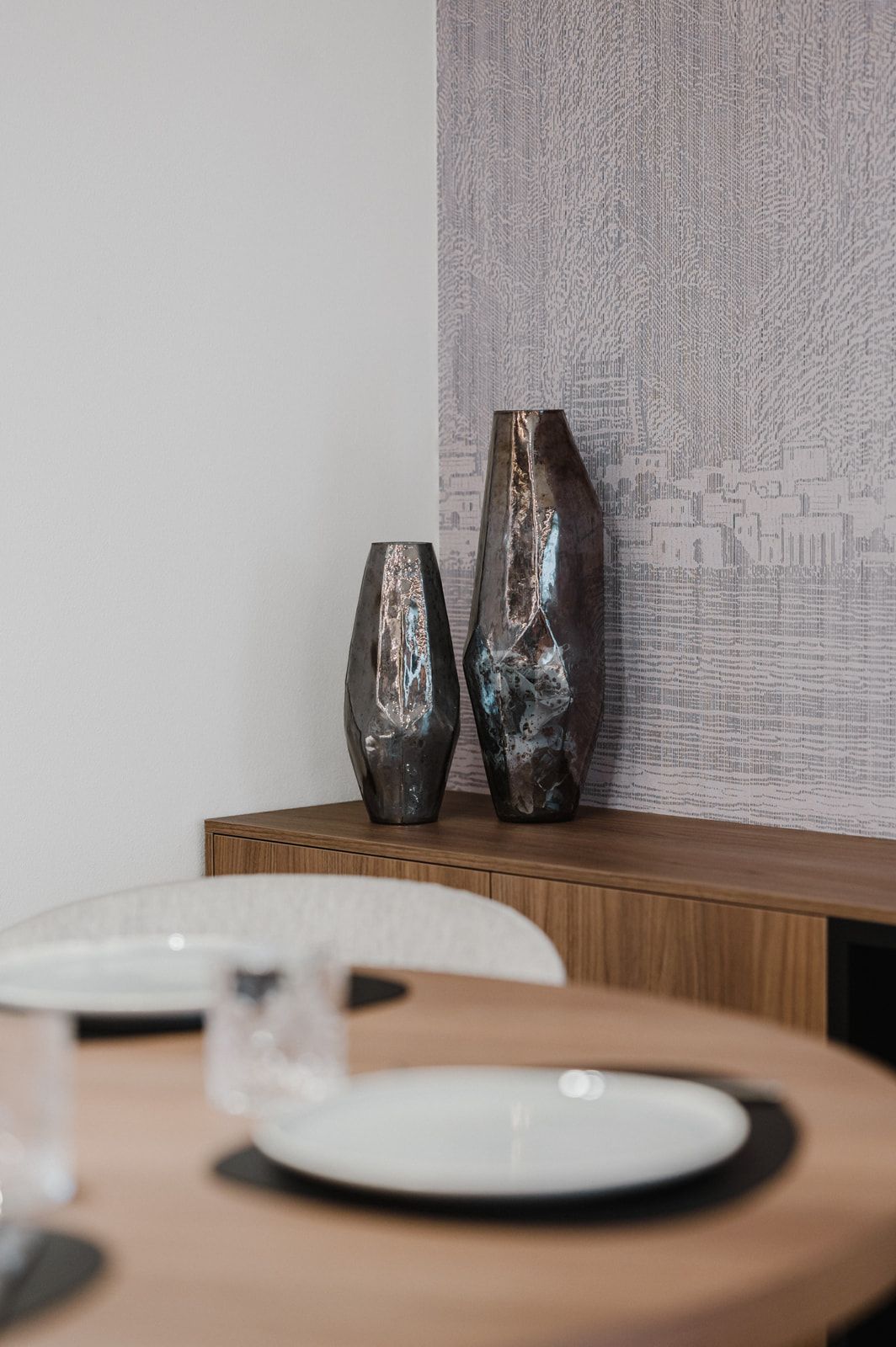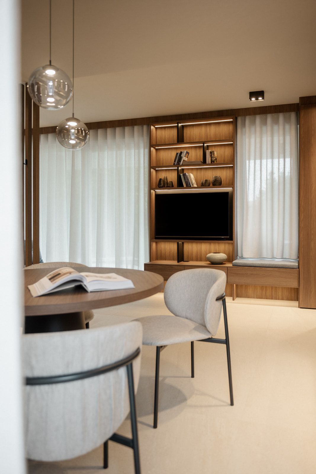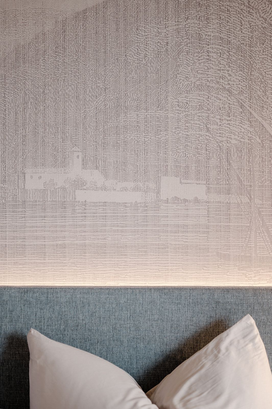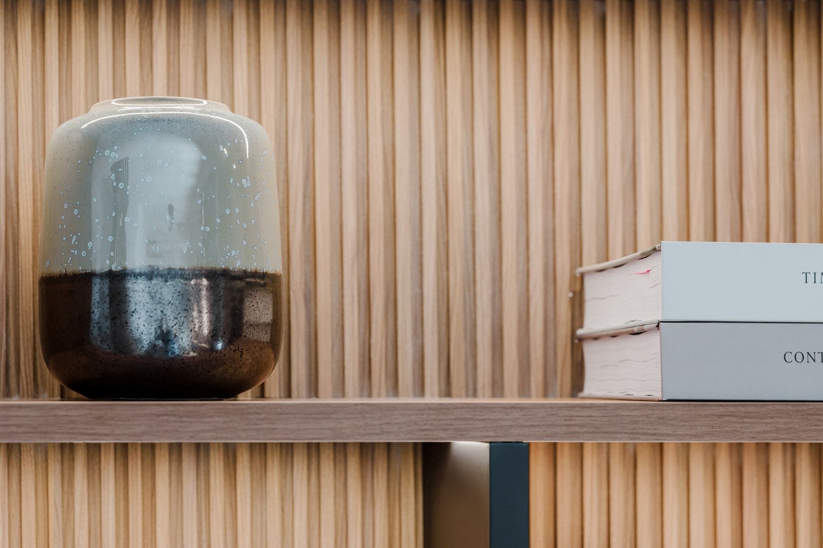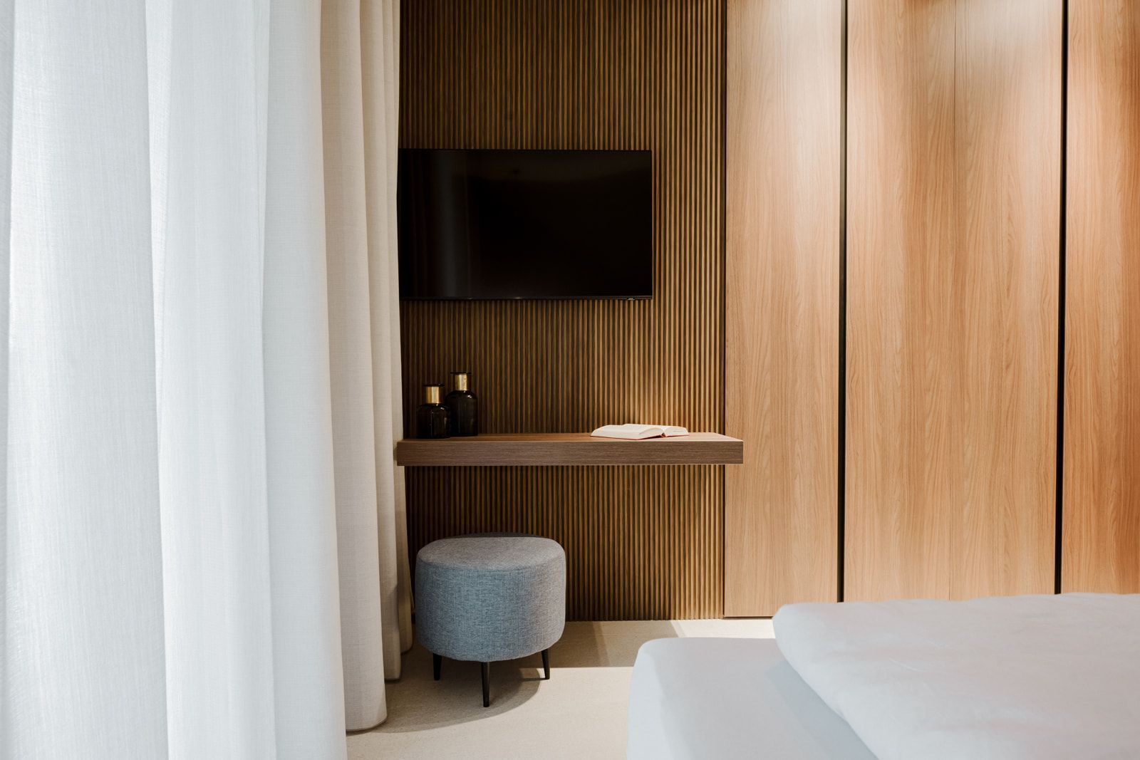...einer ferienwohnung in edlem nussholz gepaart mit travertinstein und sommerlichen blautönen