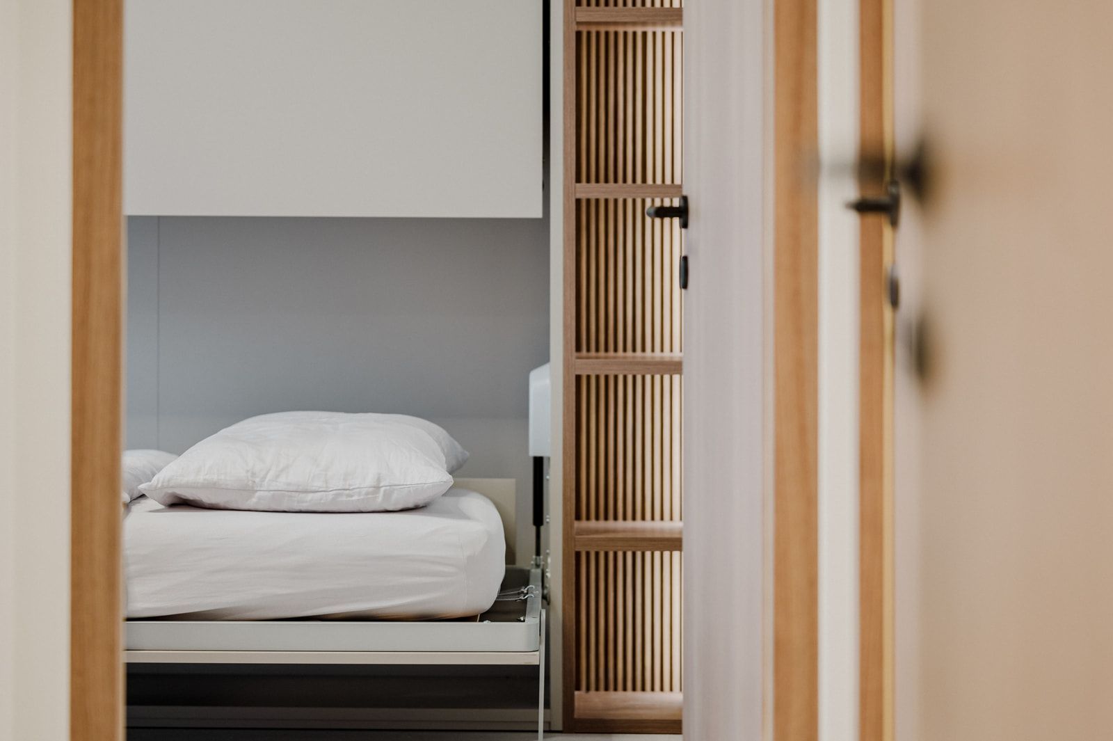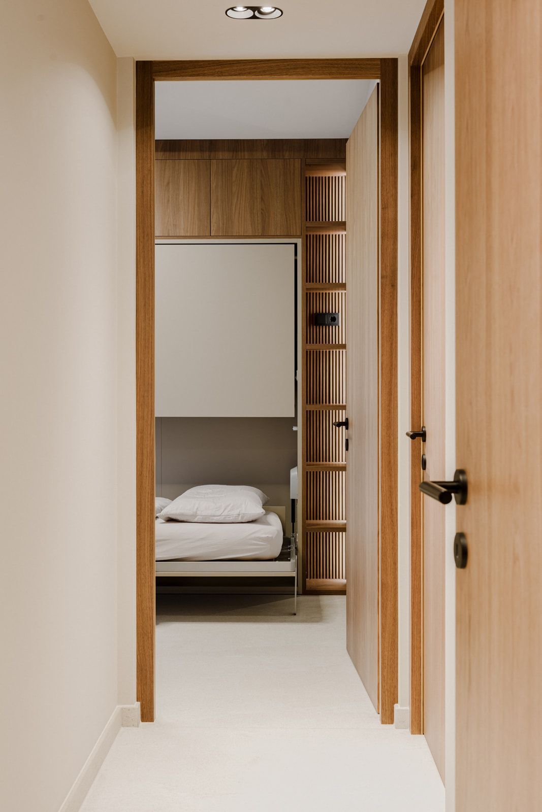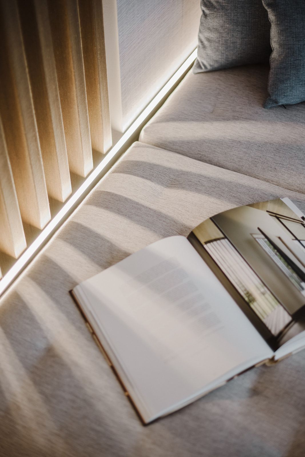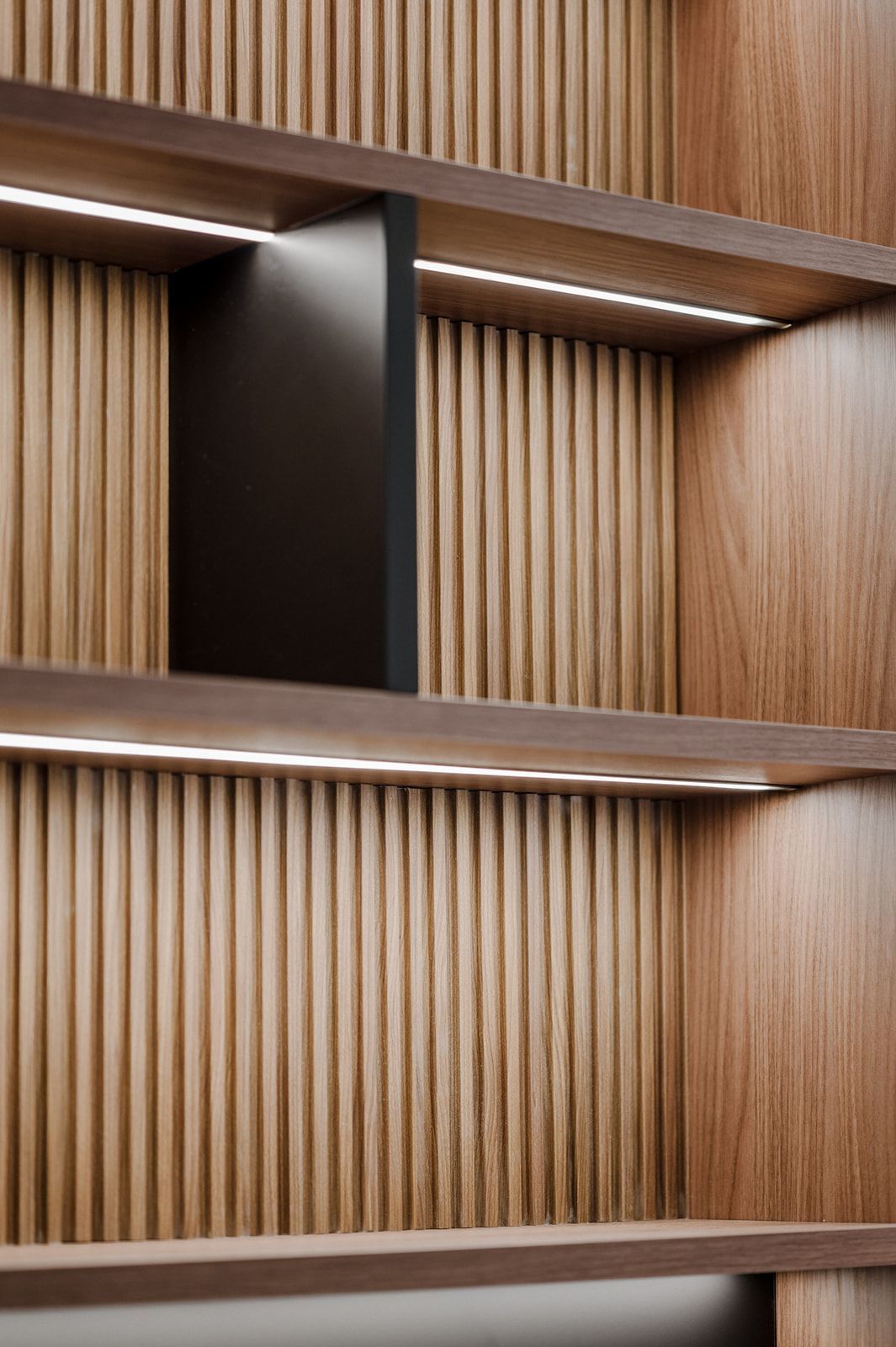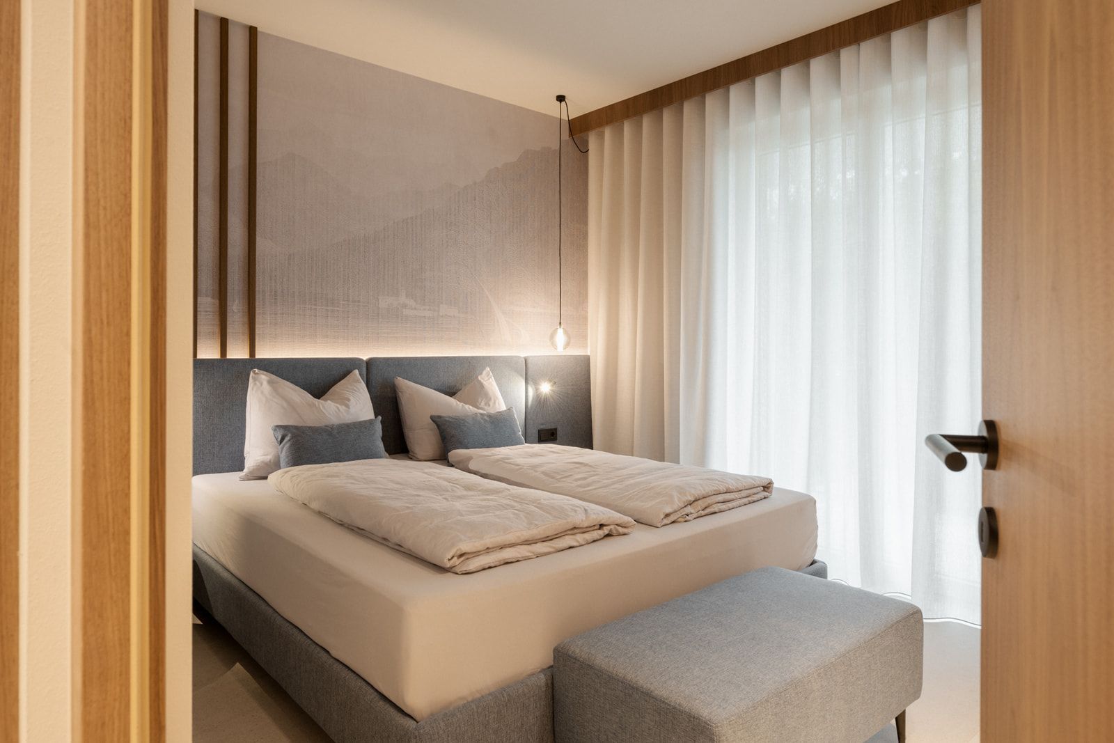...einer ferienwohnung in edlem nussholz gepaart mit travertinstein und sommerlichen blautönen
