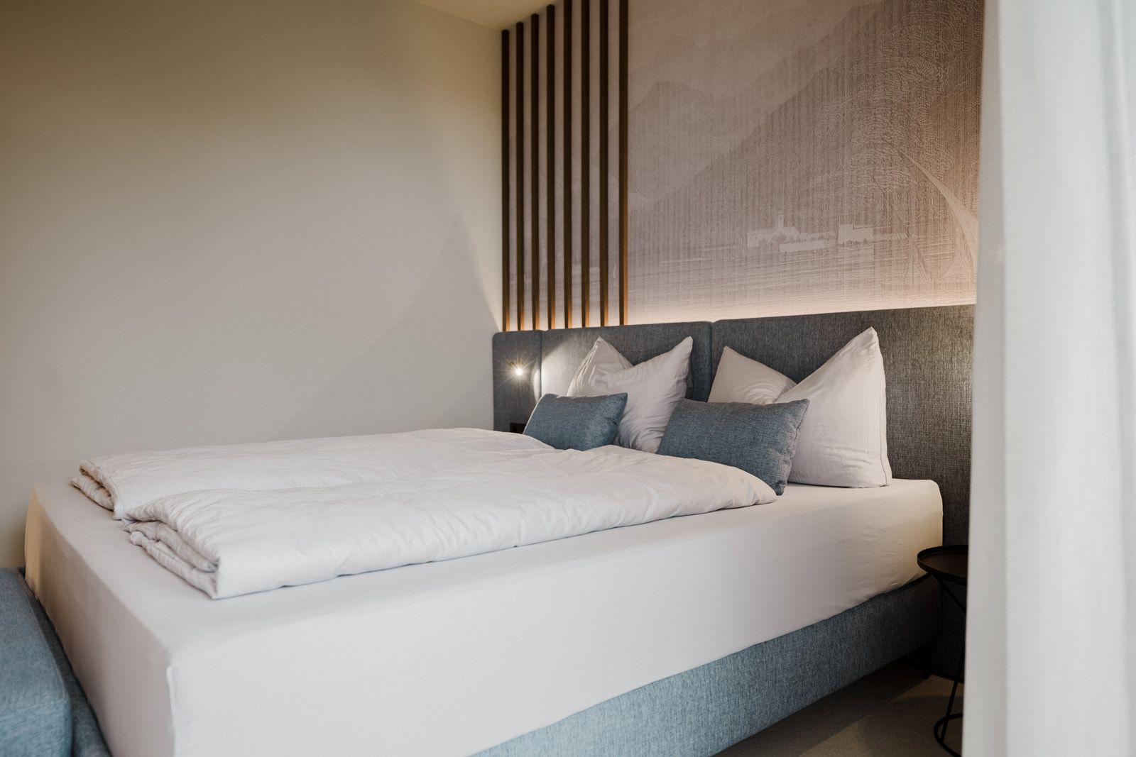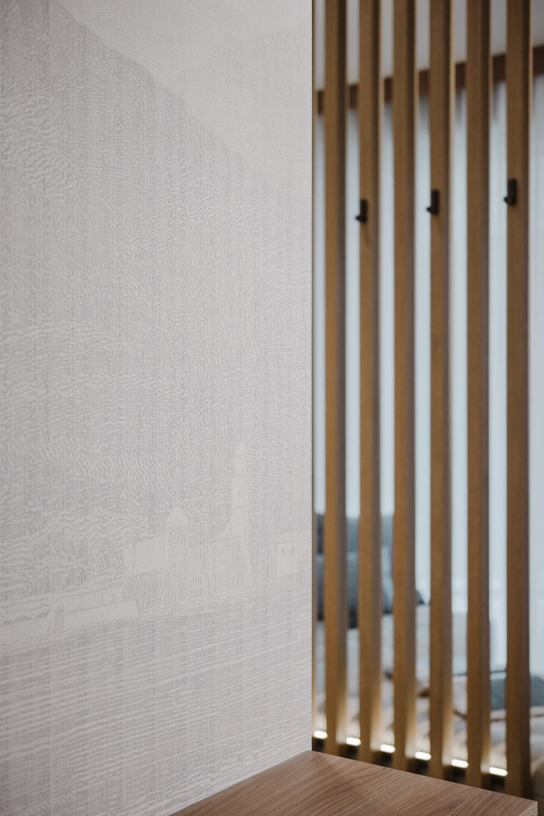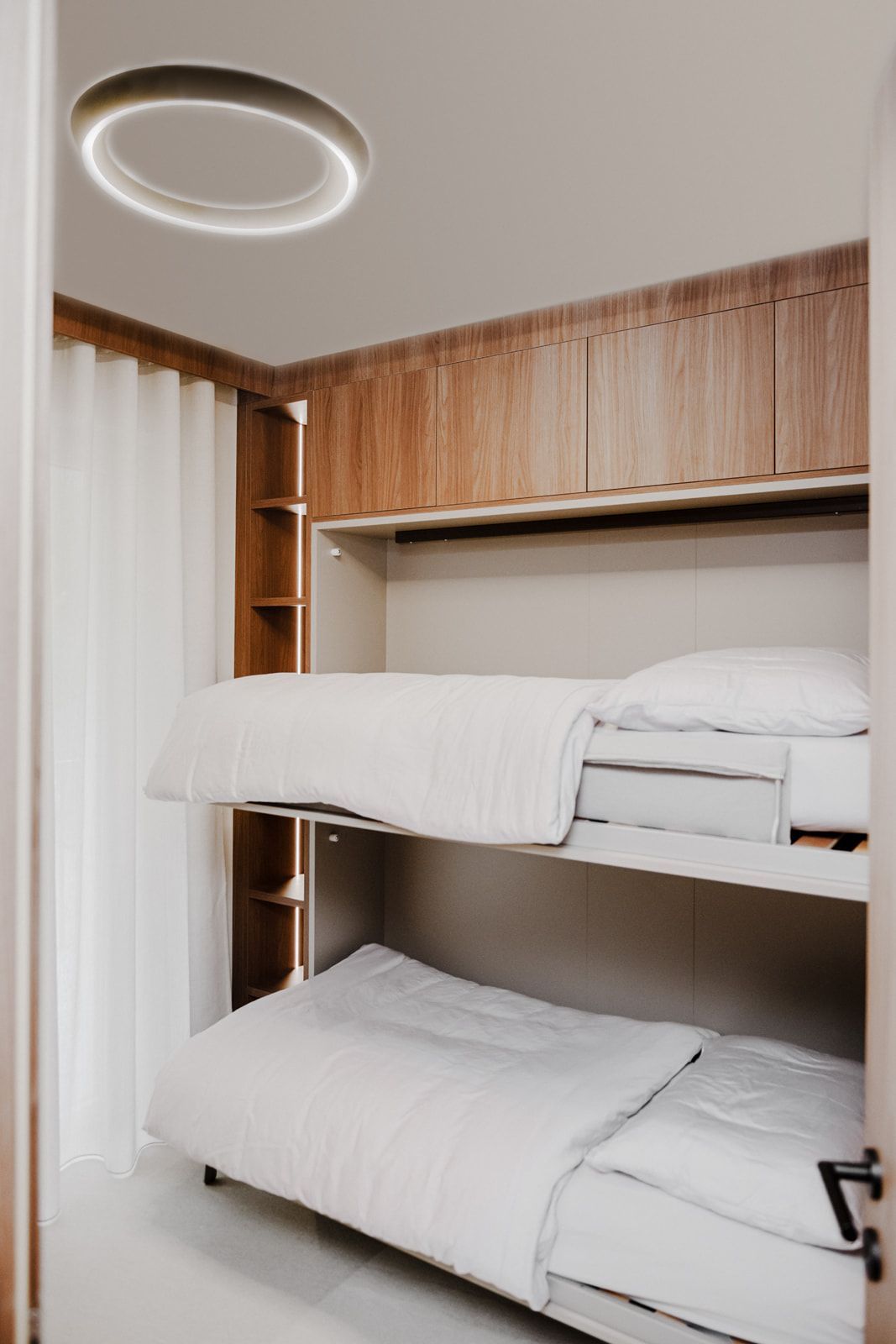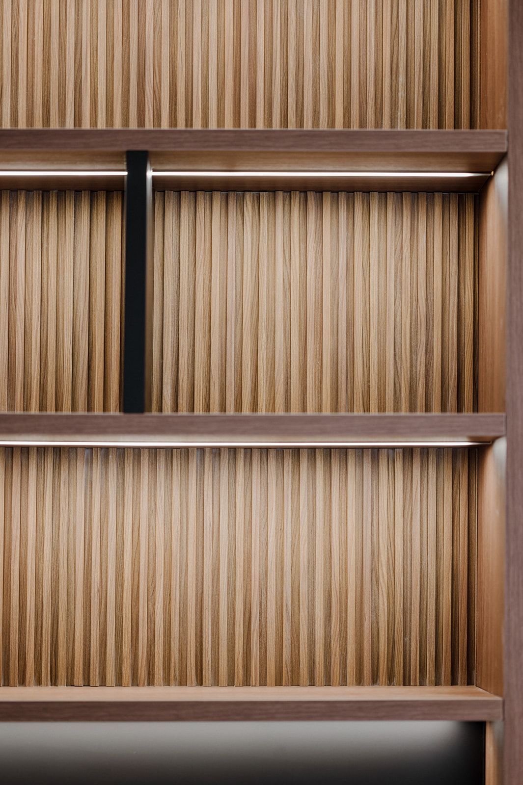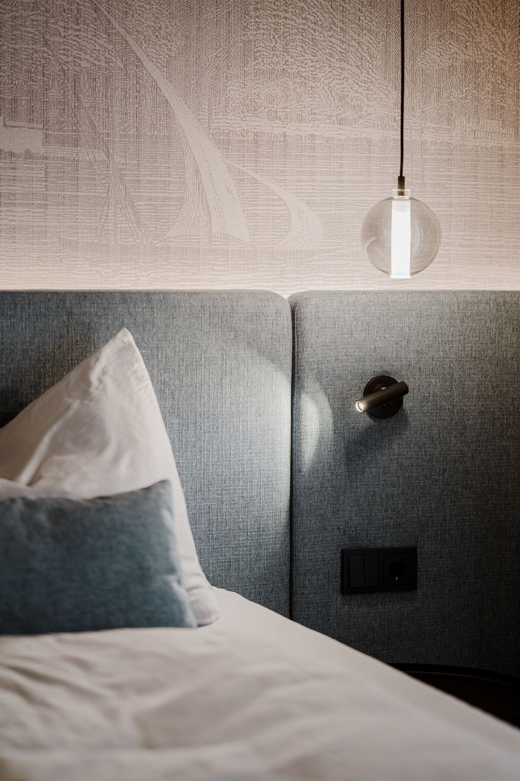 ...einer ferienwohnung in edlem nussholz gepaart mit travertinstein und sommerlichen blautönen