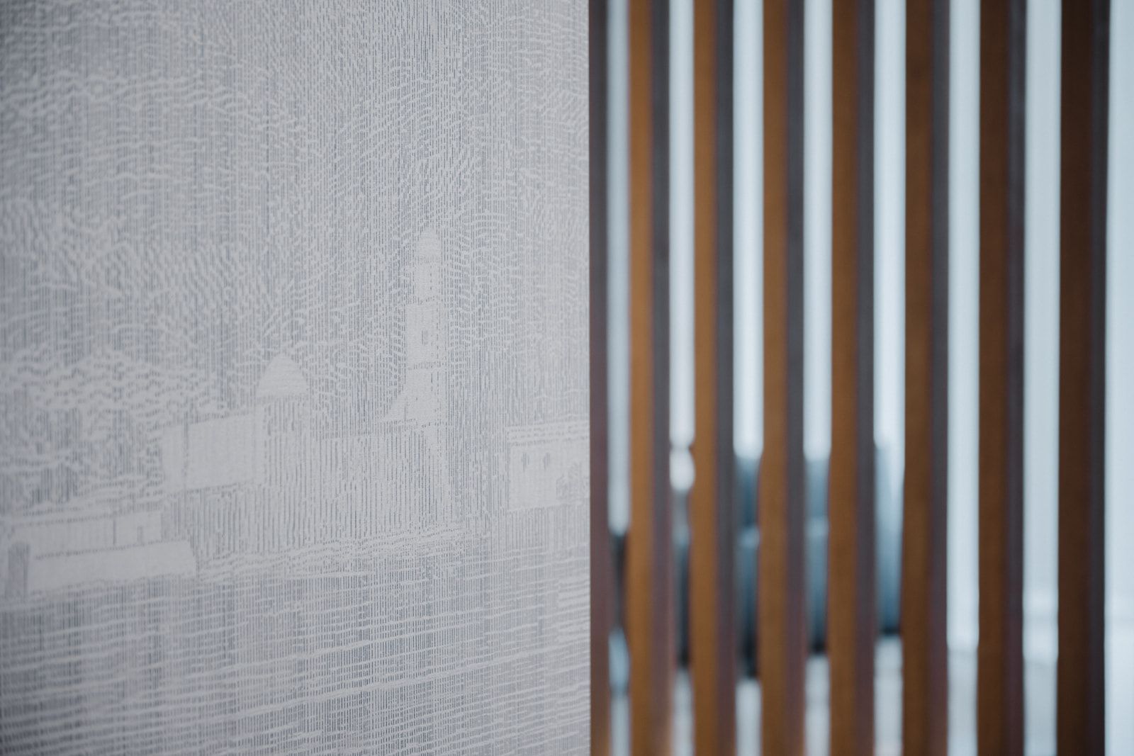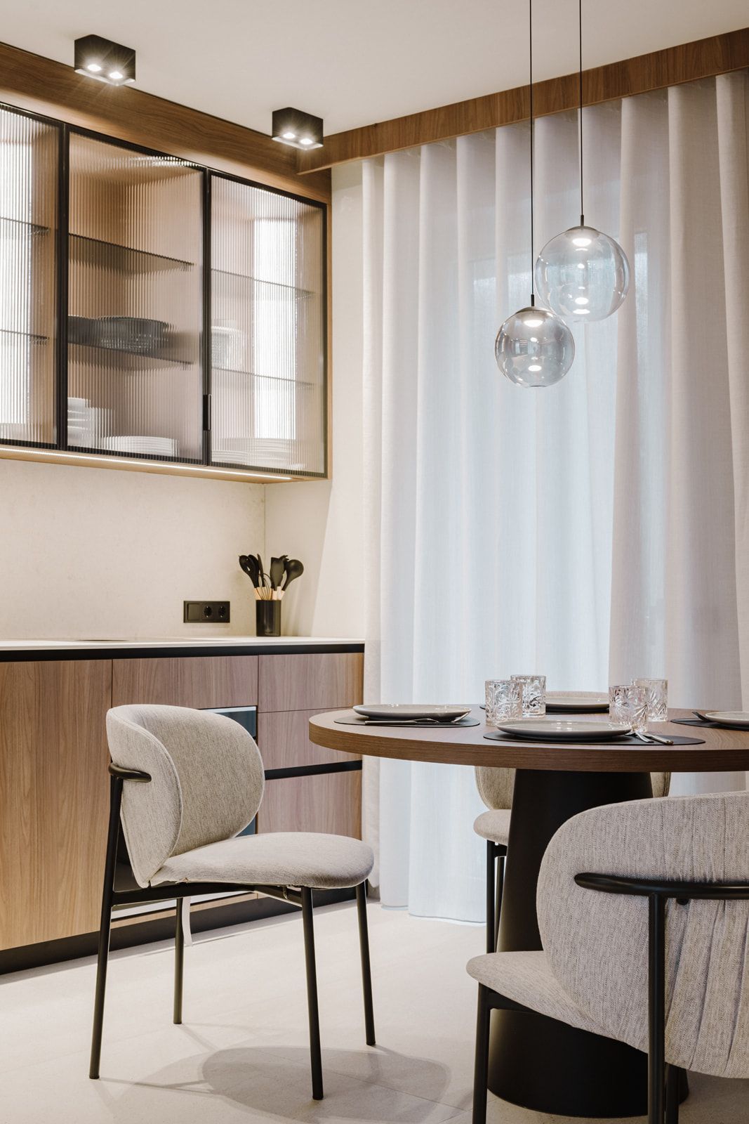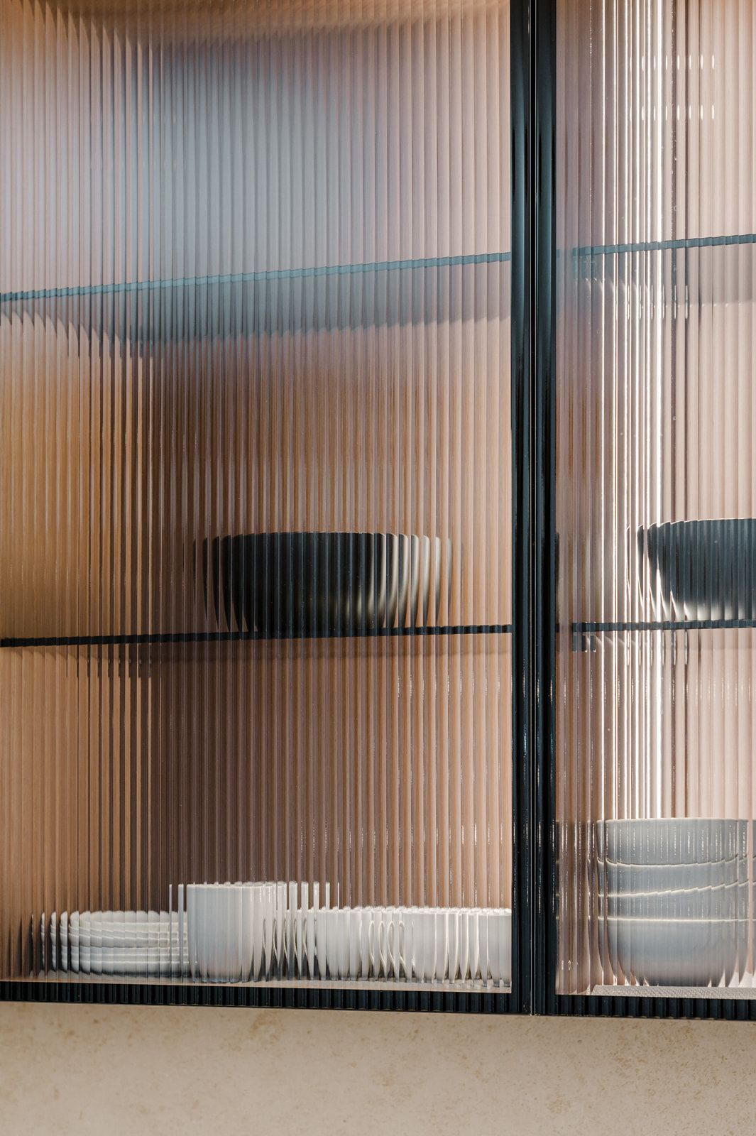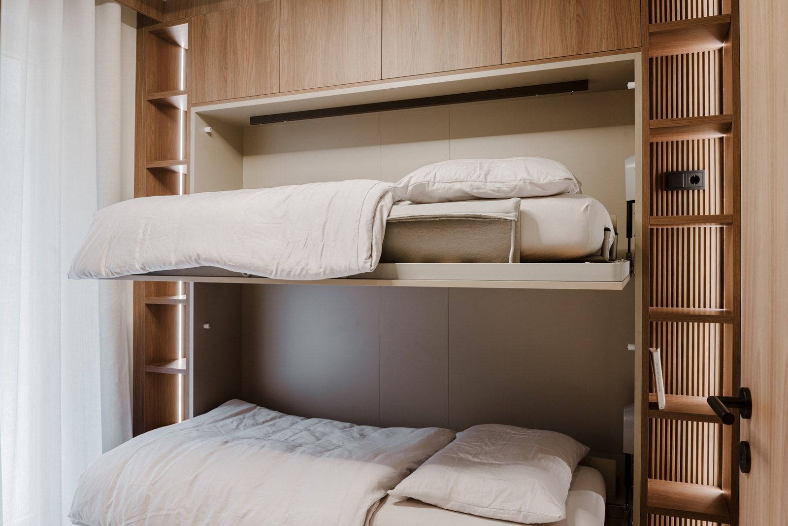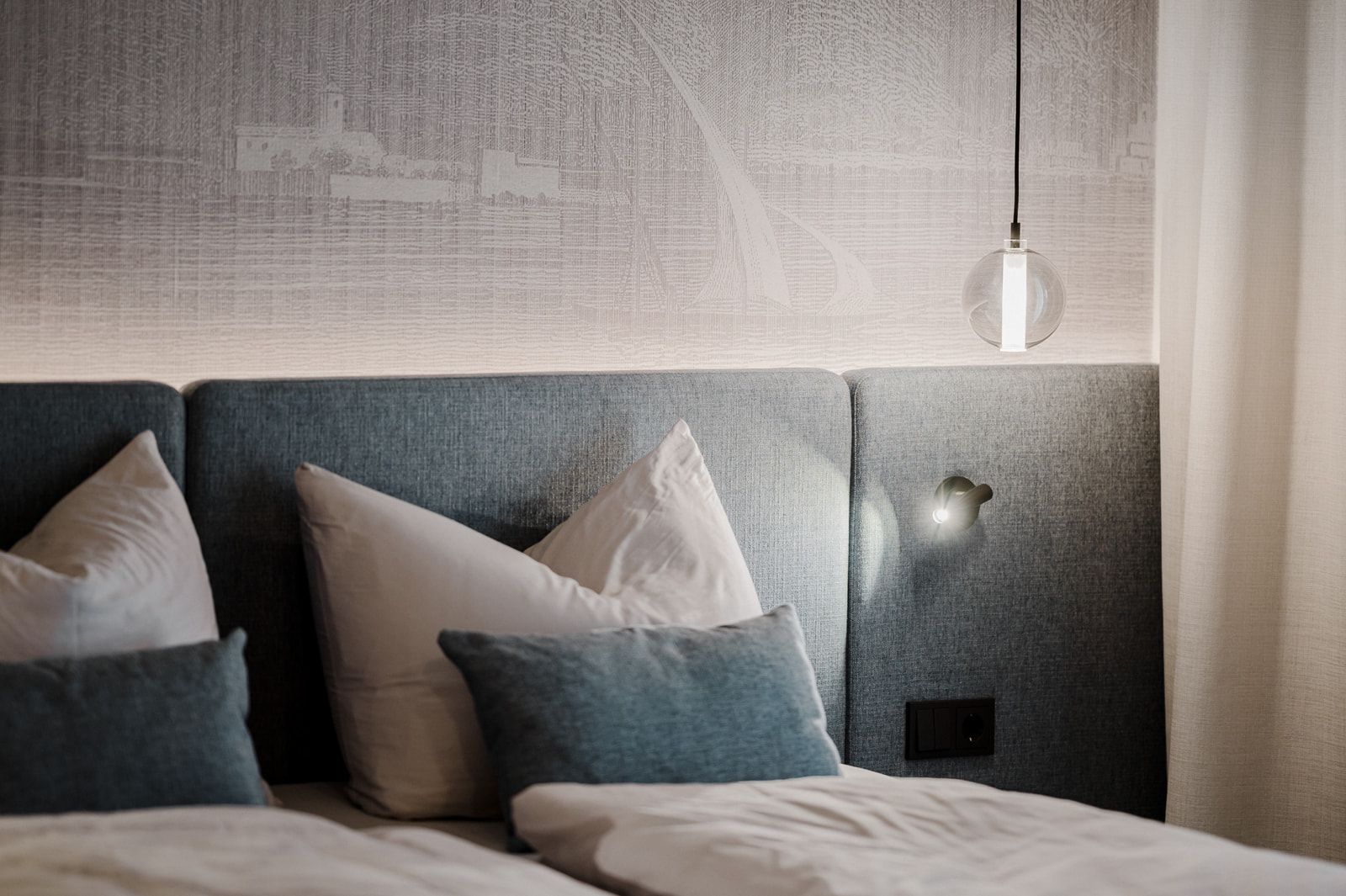 ...einer ferienwohnung in edlem nussholz gepaart mit travertinstein und sommerlichen blautönen