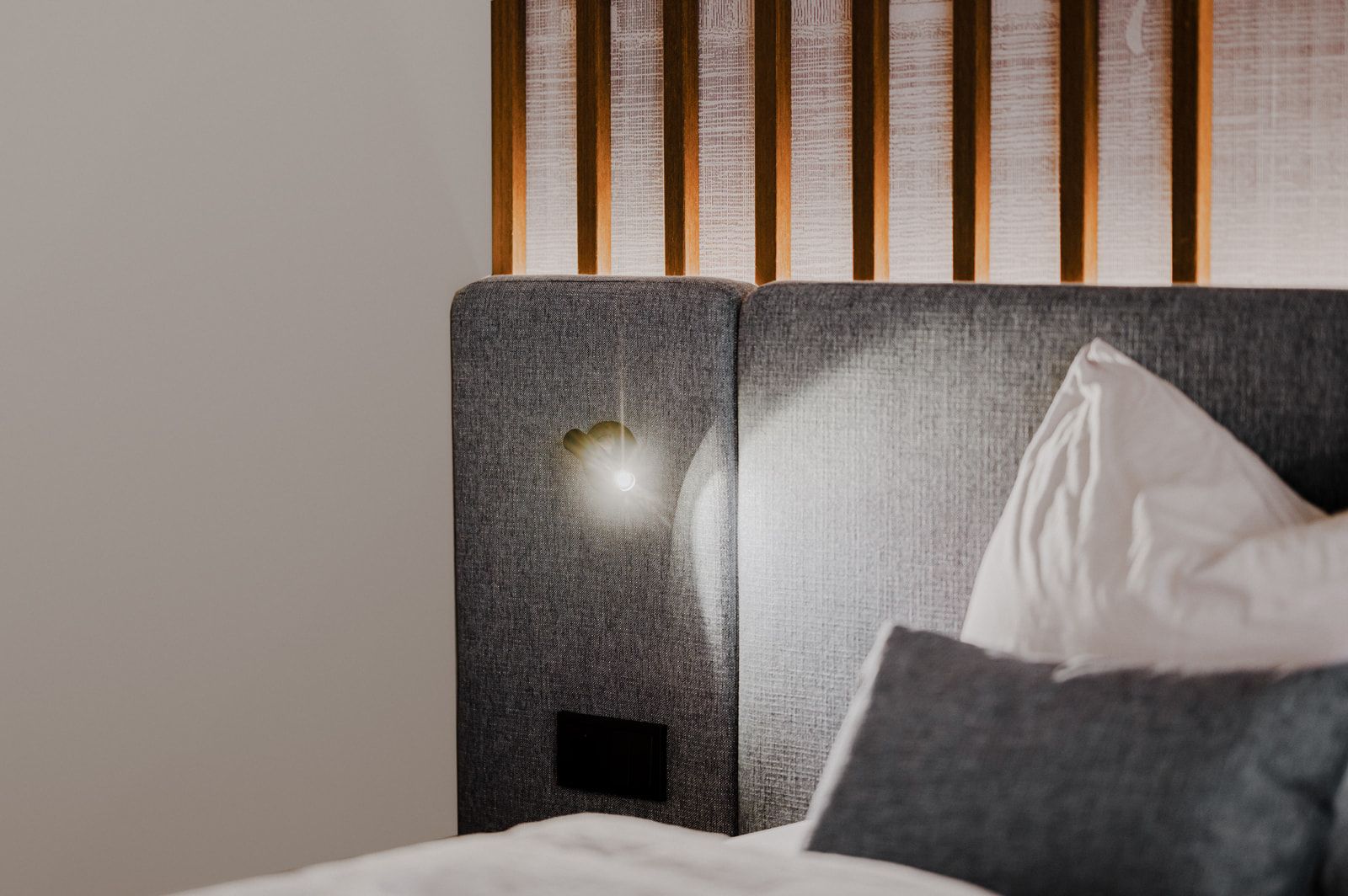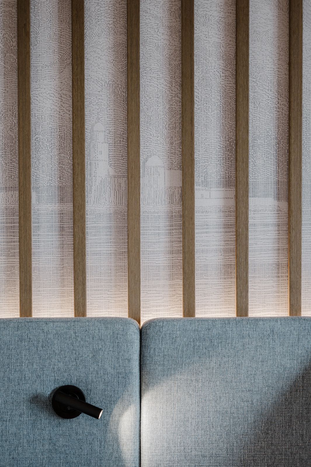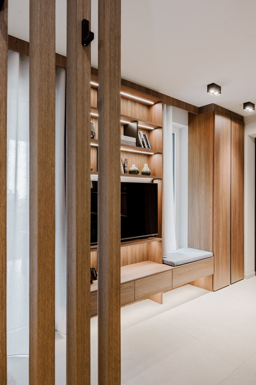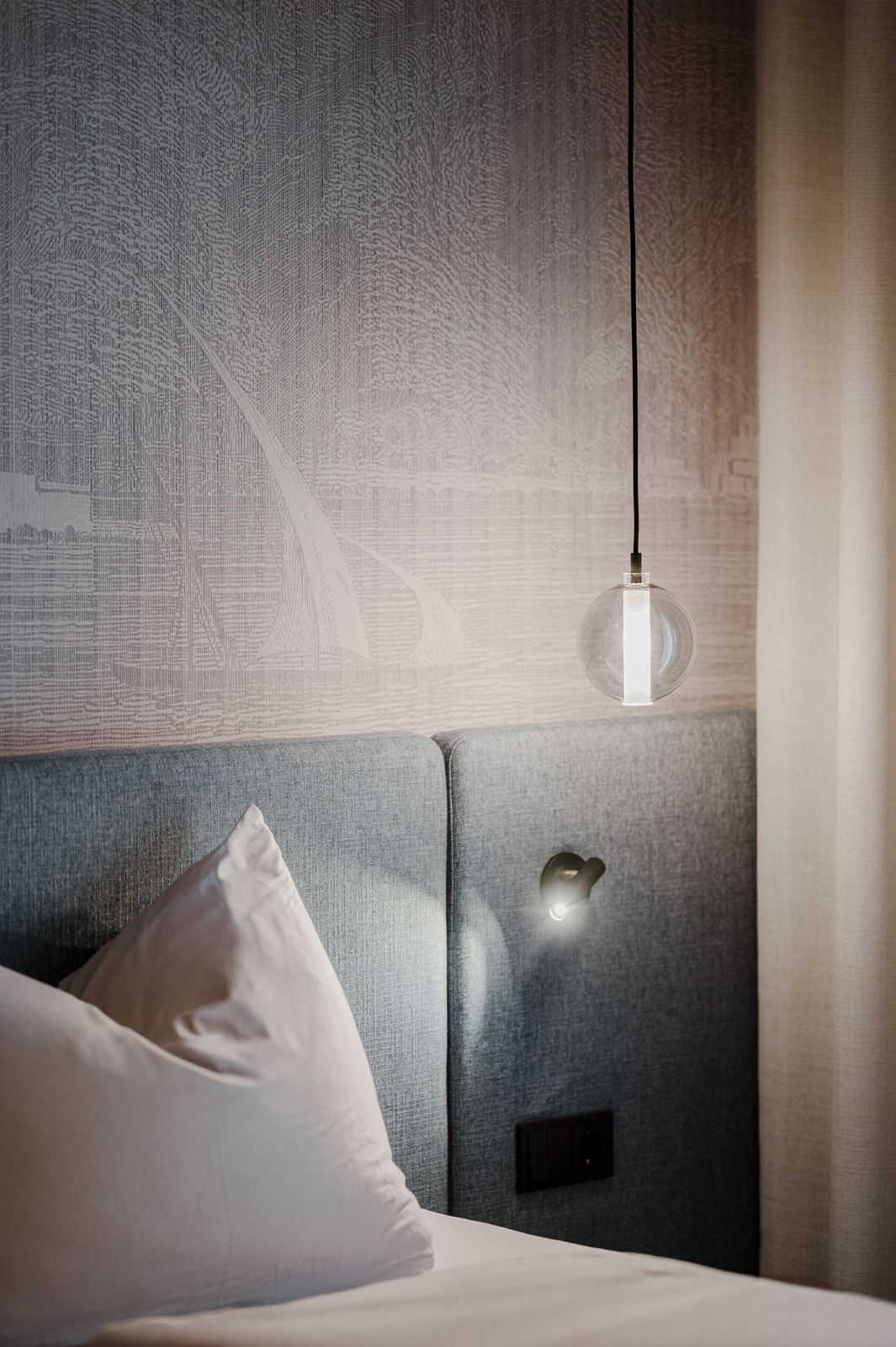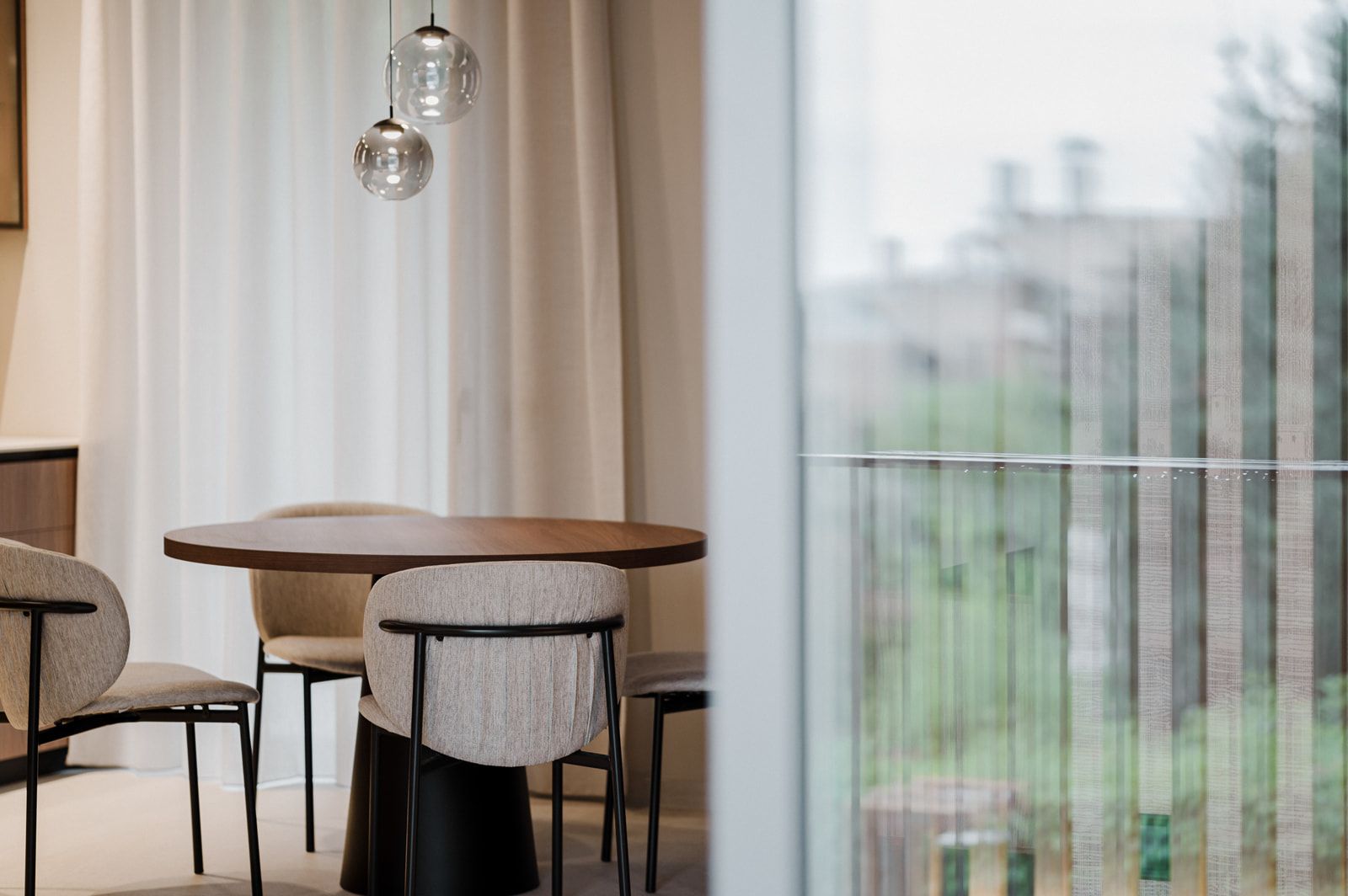 ...einer ferienwohnung in edlem nussholz gepaart mit travertinstein und sommerlichen blautönen