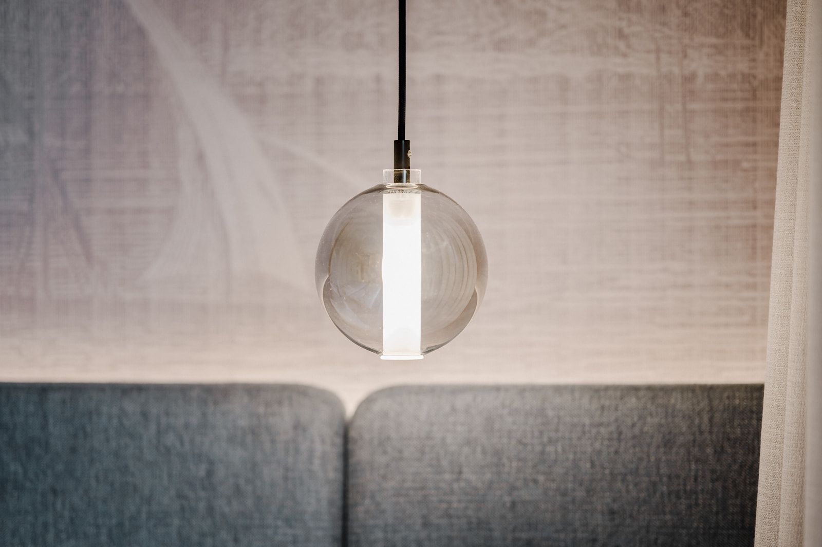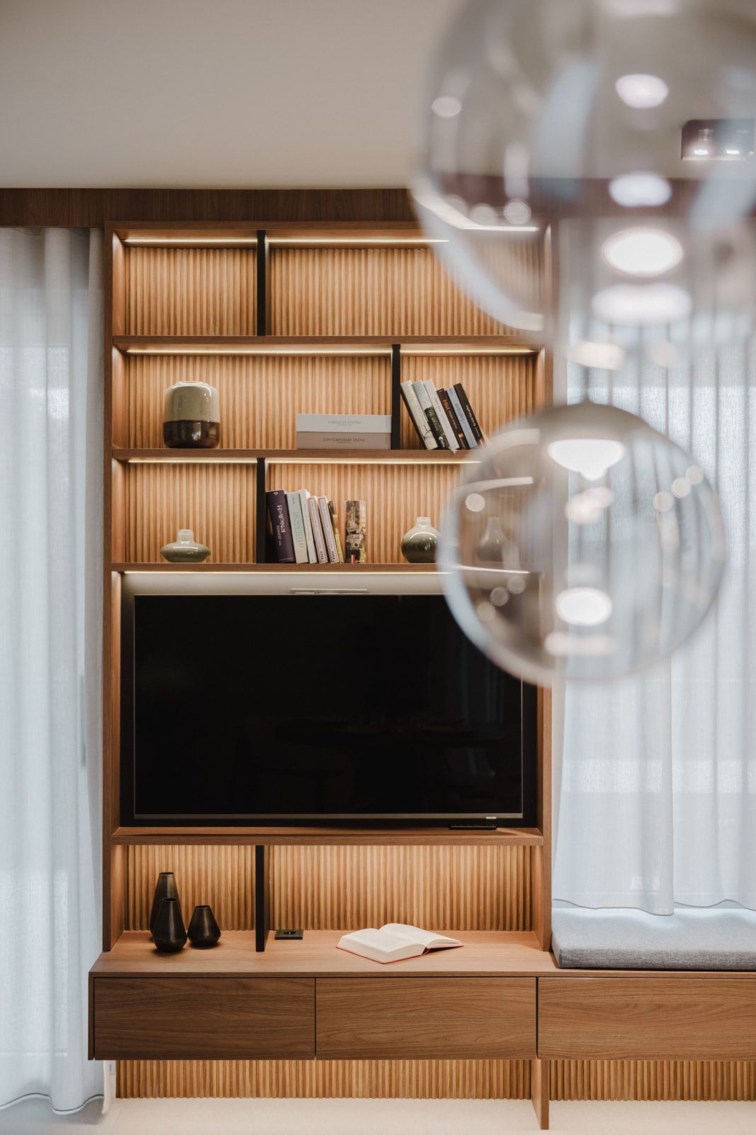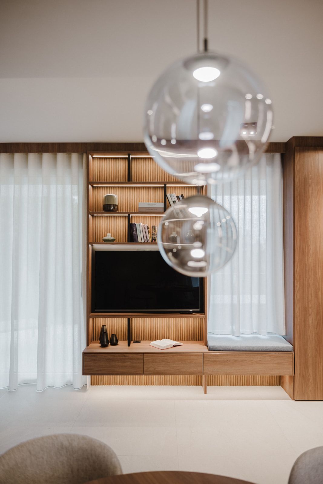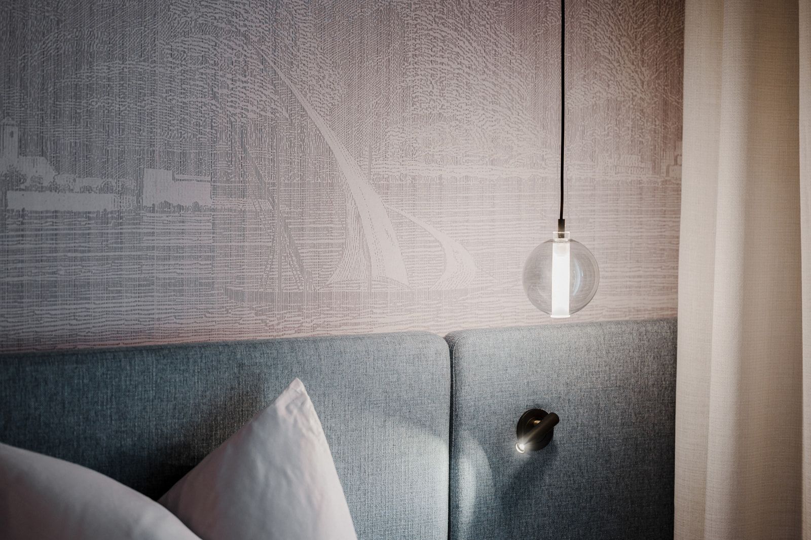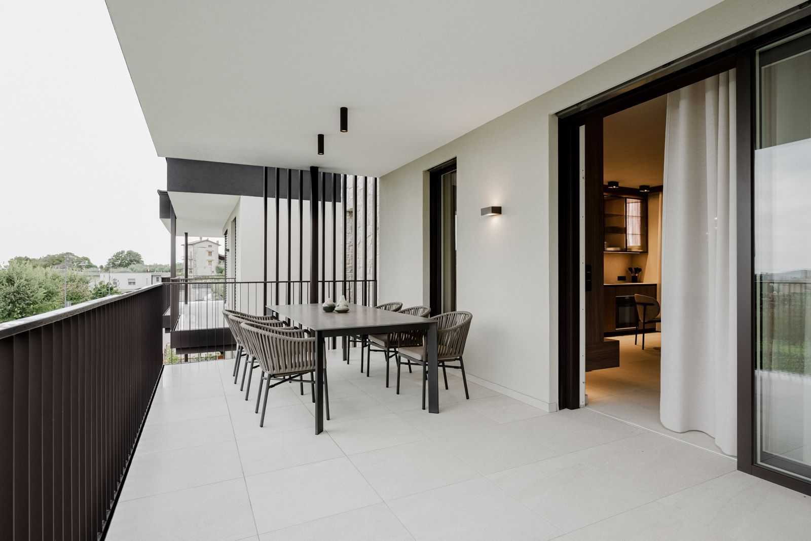...einer ferienwohnung in edlem nussholz gepaart mit travertinstein und sommerlichen blautönen