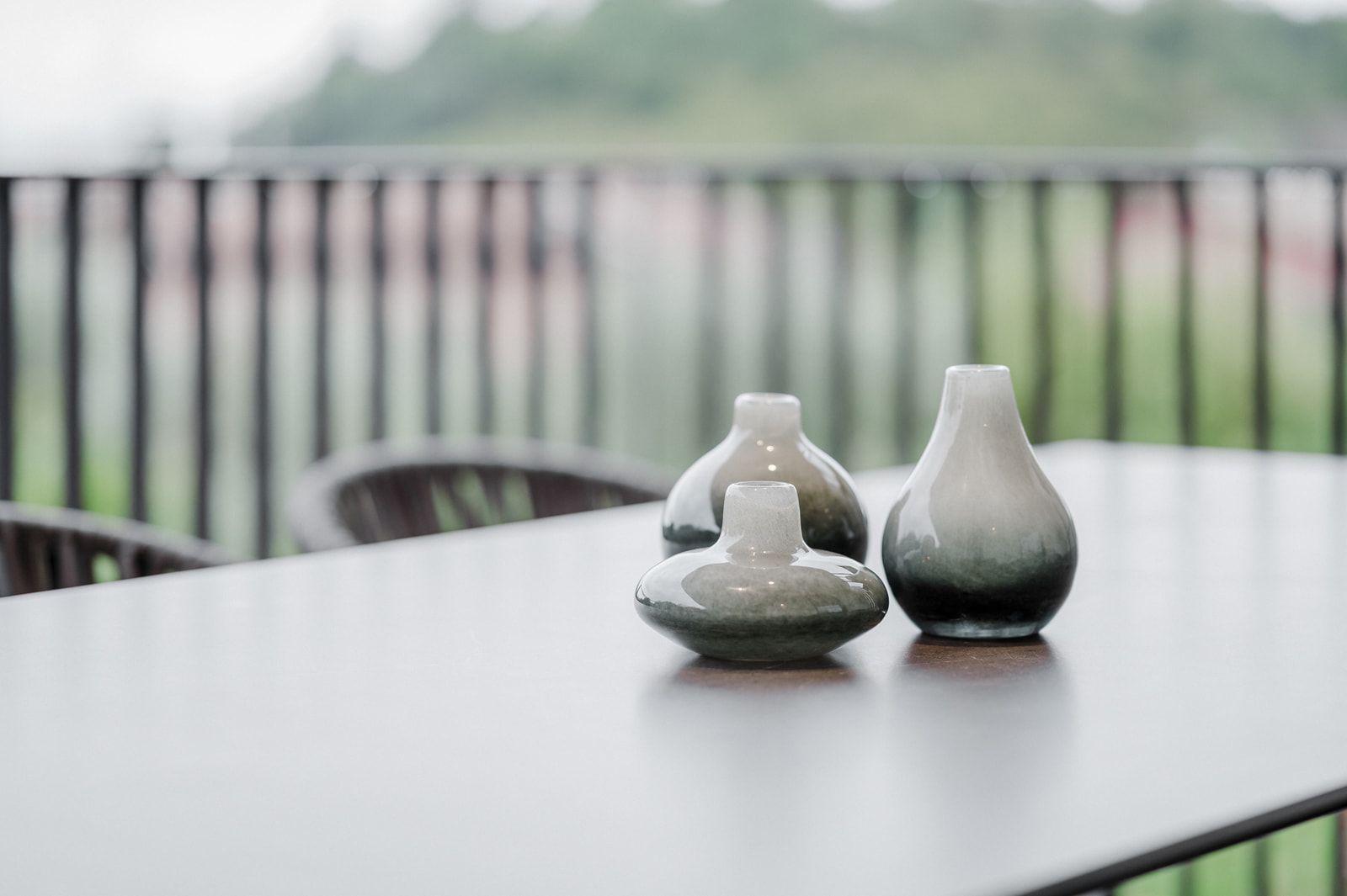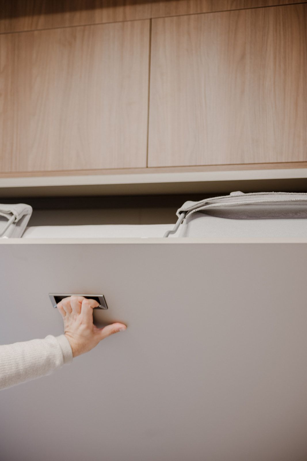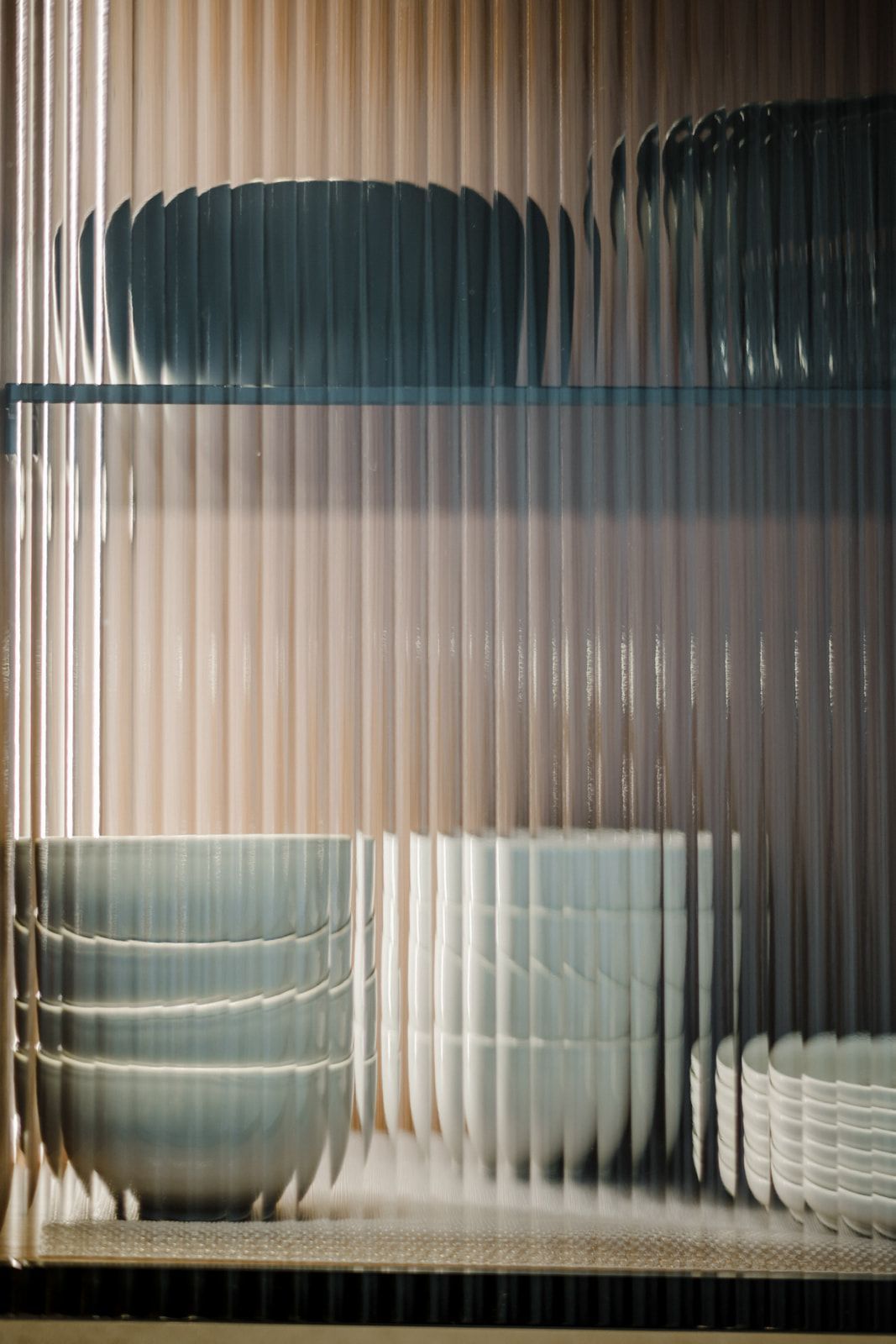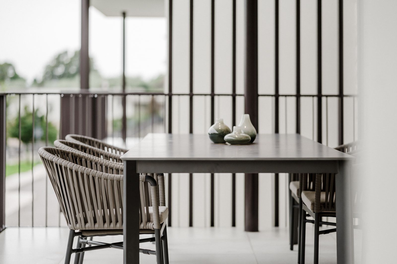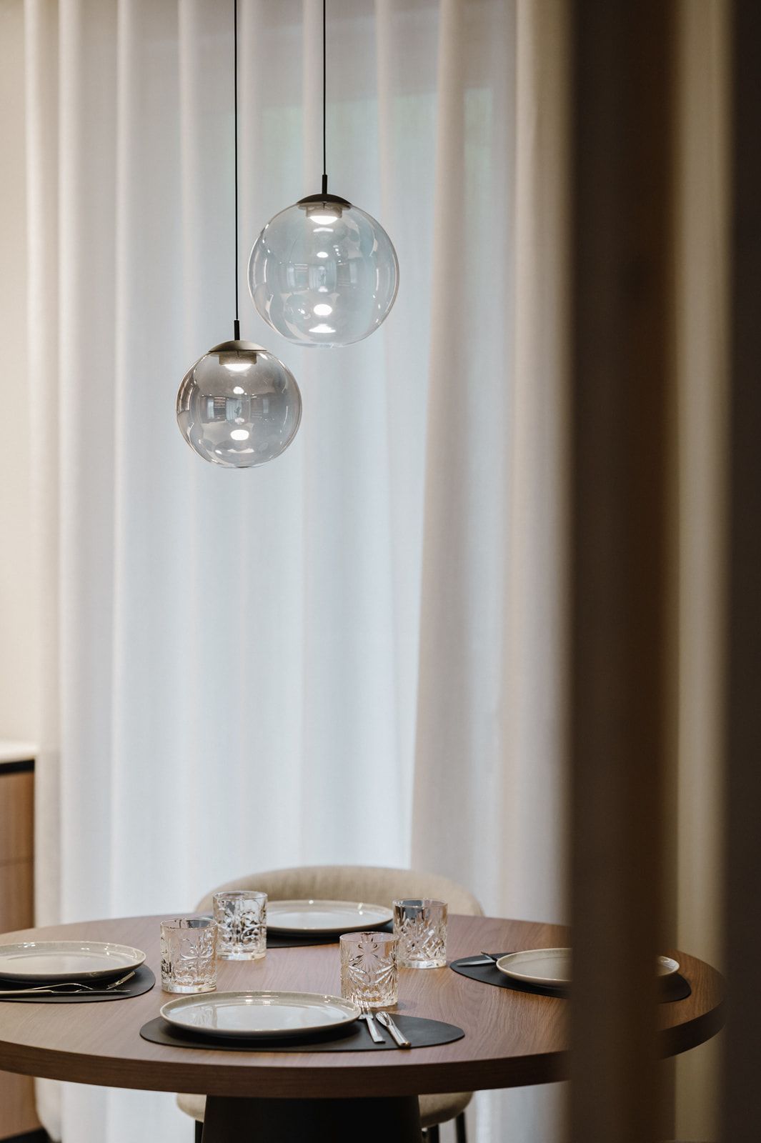 ...einer ferienwohnung in edlem nussholz gepaart mit travertinstein und sommerlichen blautönen