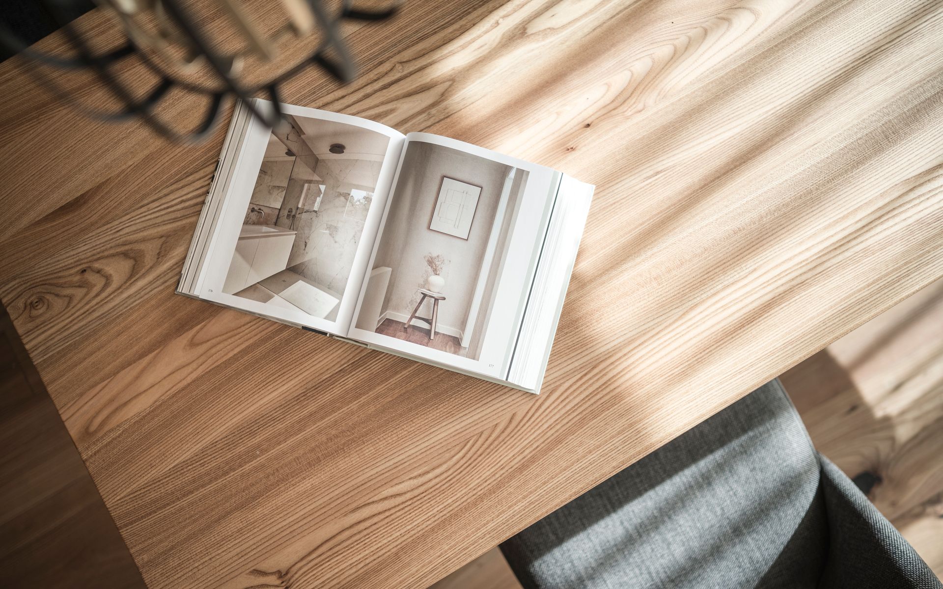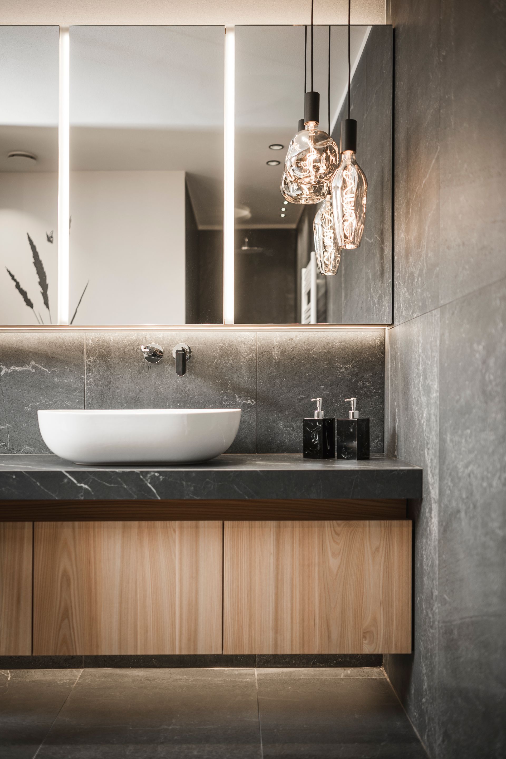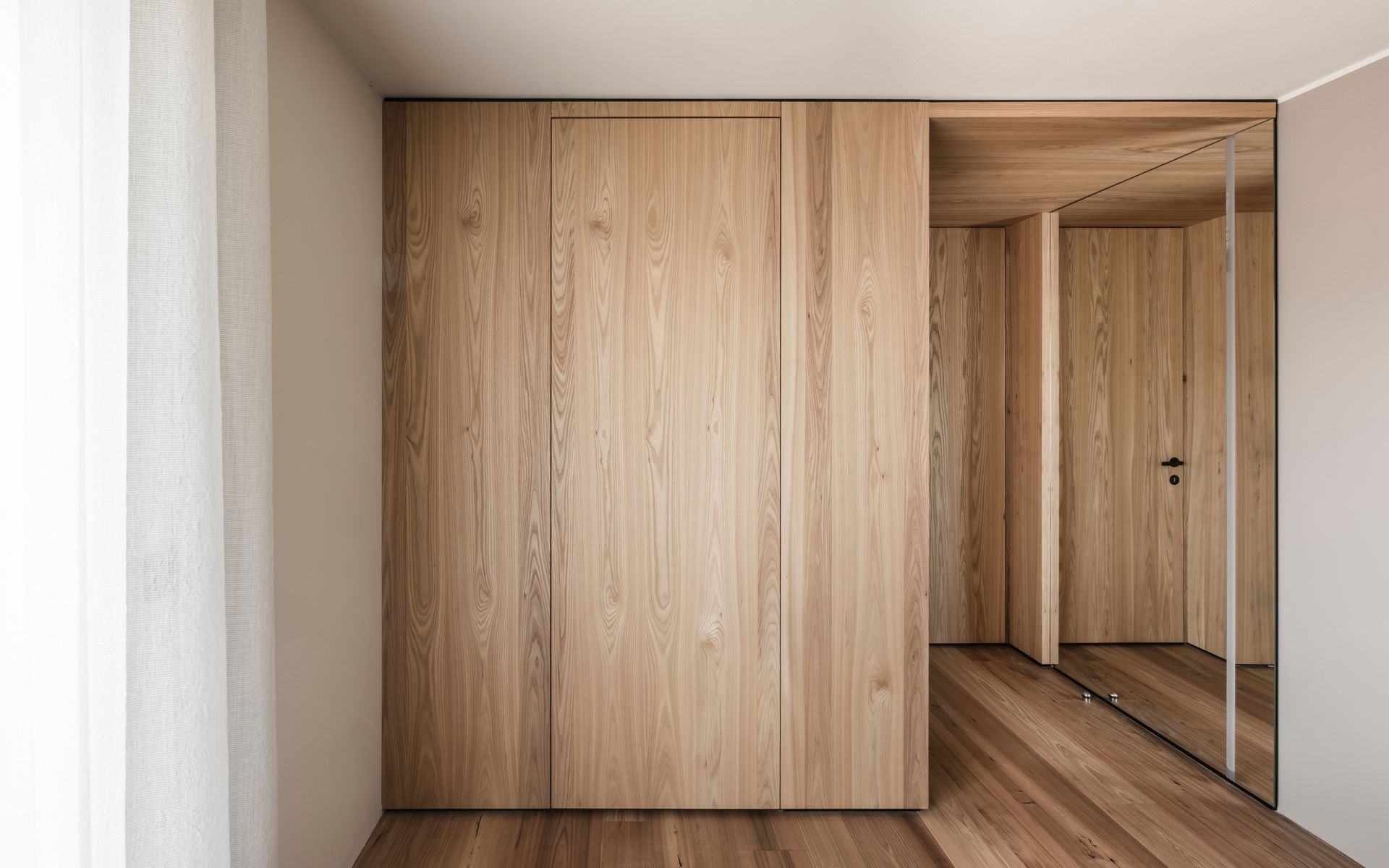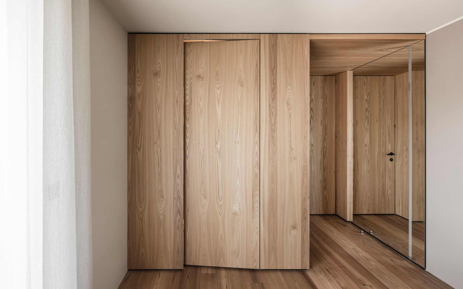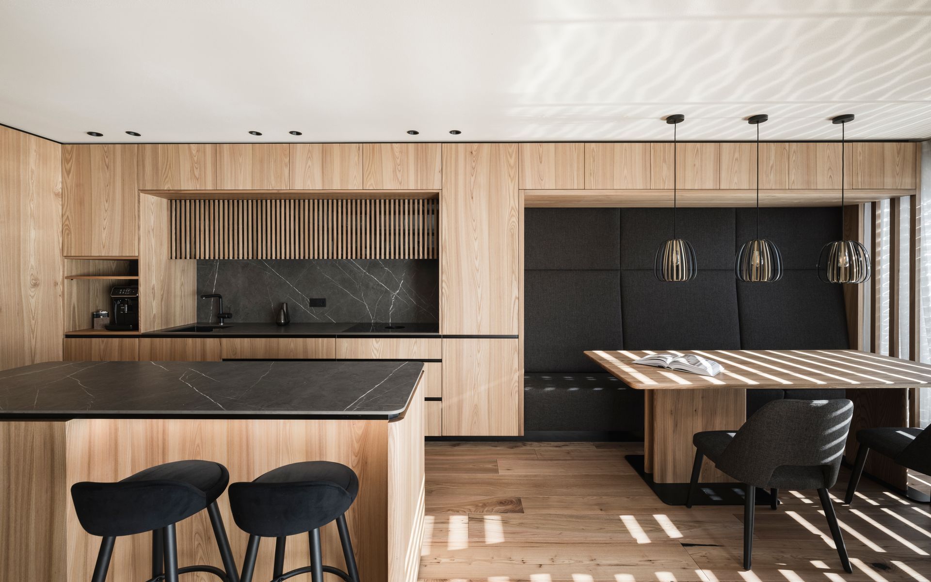 ...interior design einer privatwohnung in ulmenholz, in kombination mit edlen textilien in grau und goldelementen.