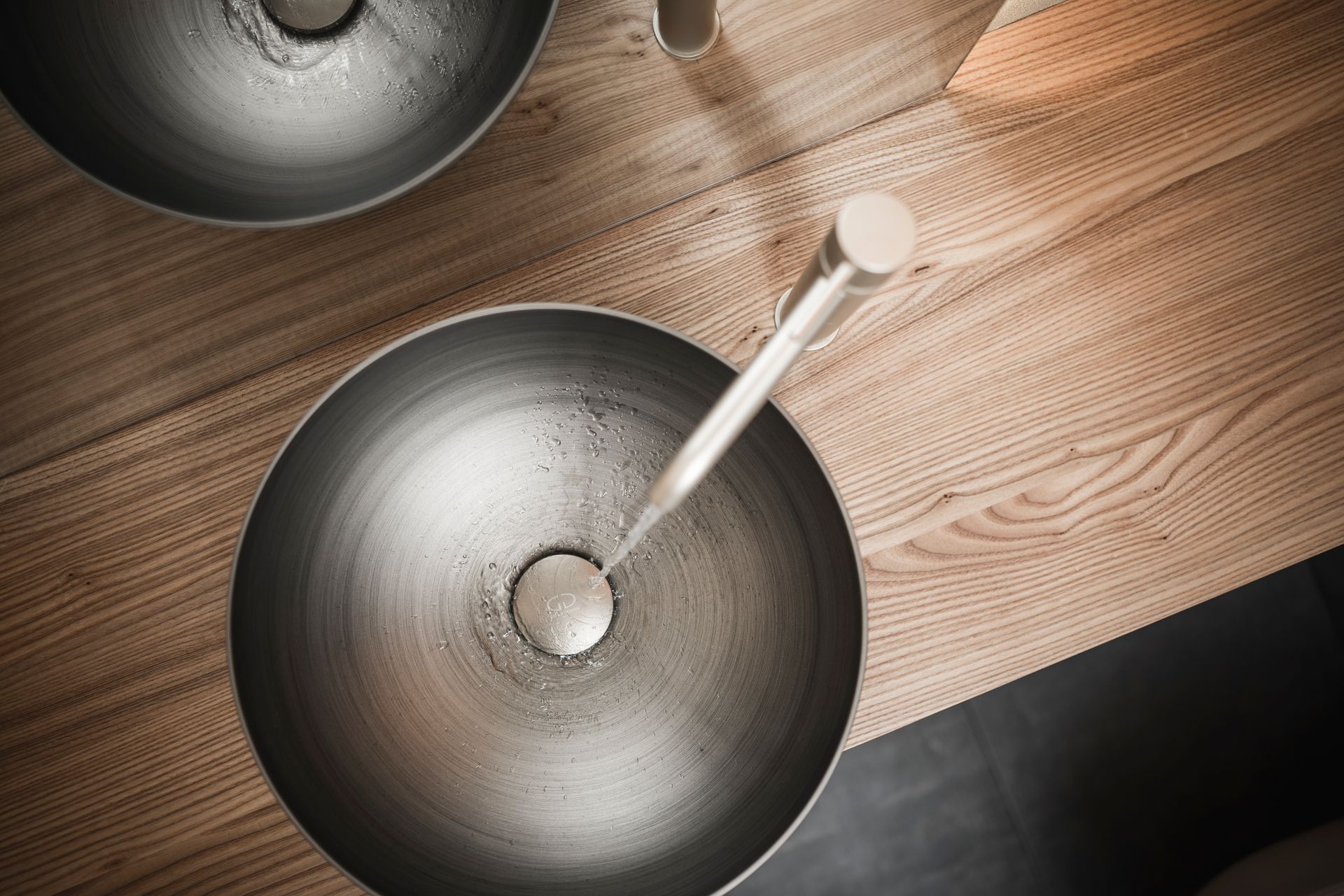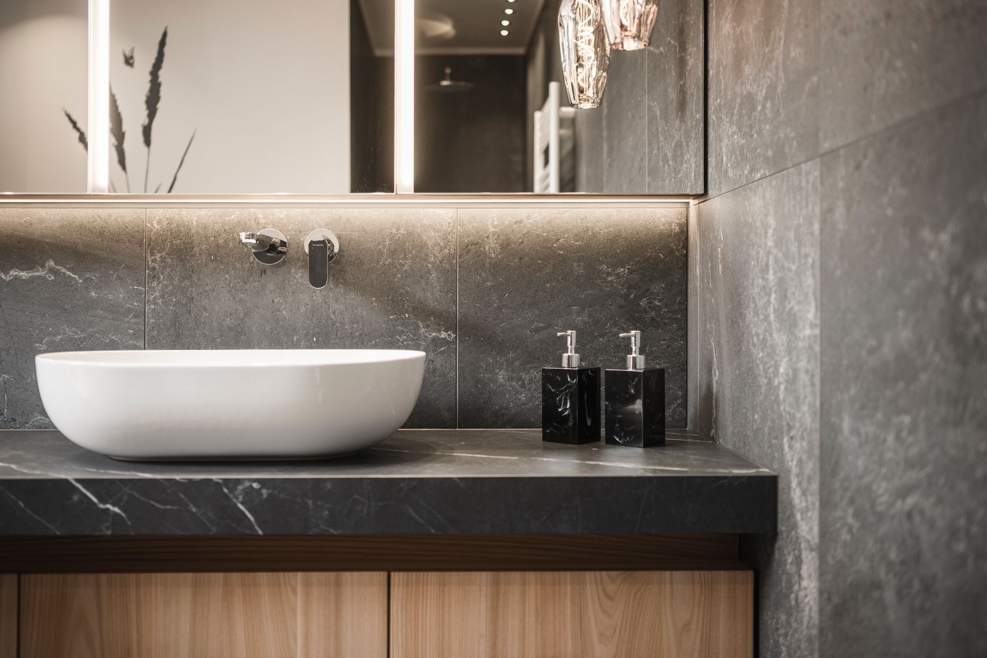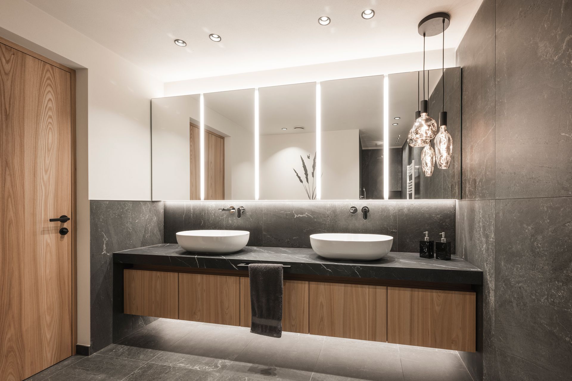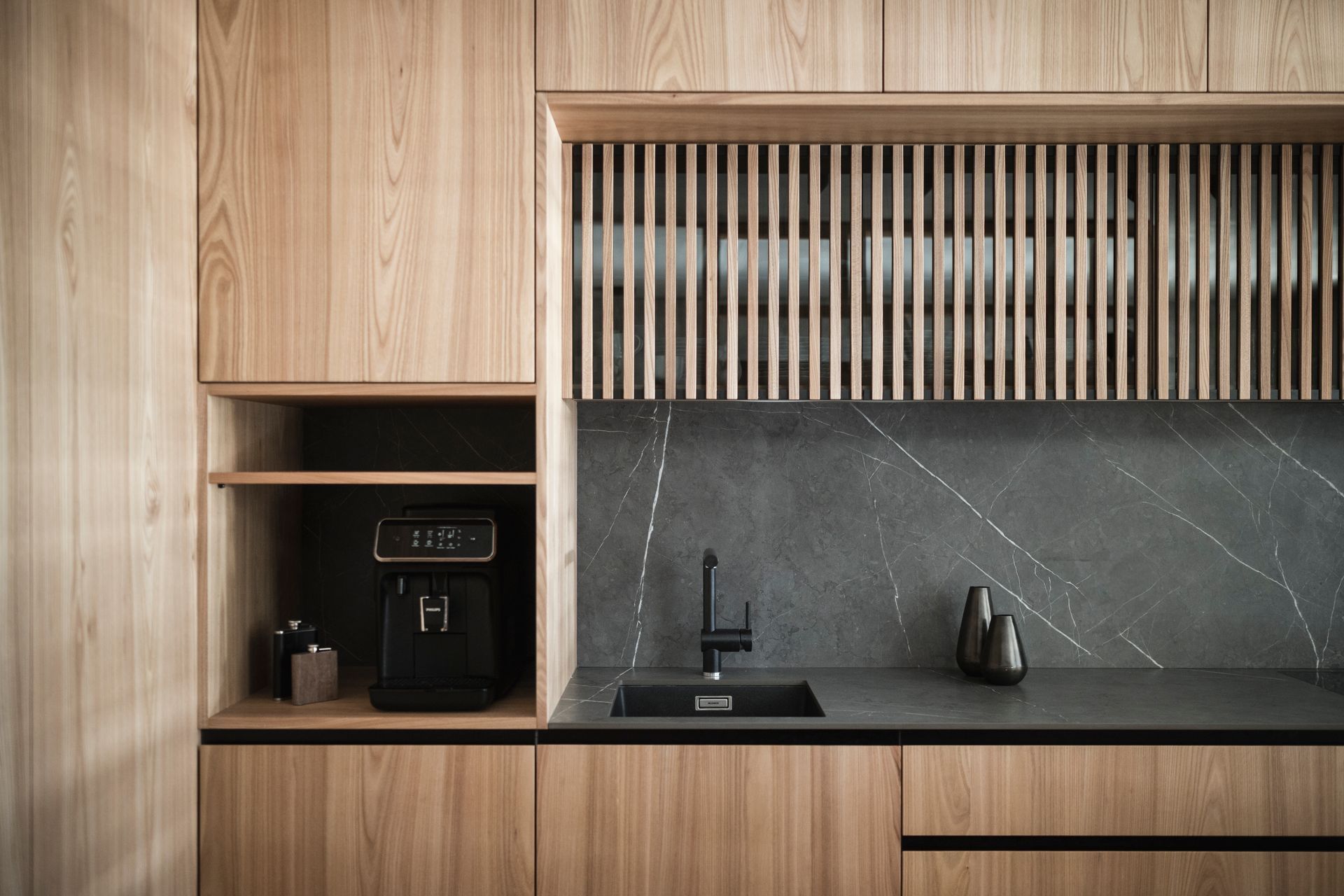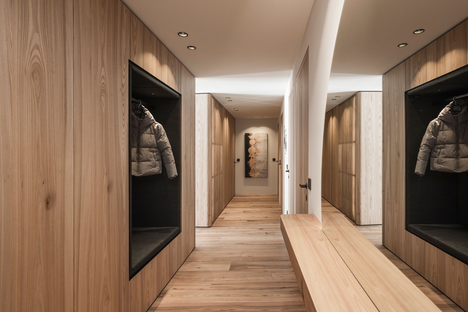 ...interior design einer privatwohnung in ulmenholz, in kombination mit edlen textilien in grau und goldelementen.