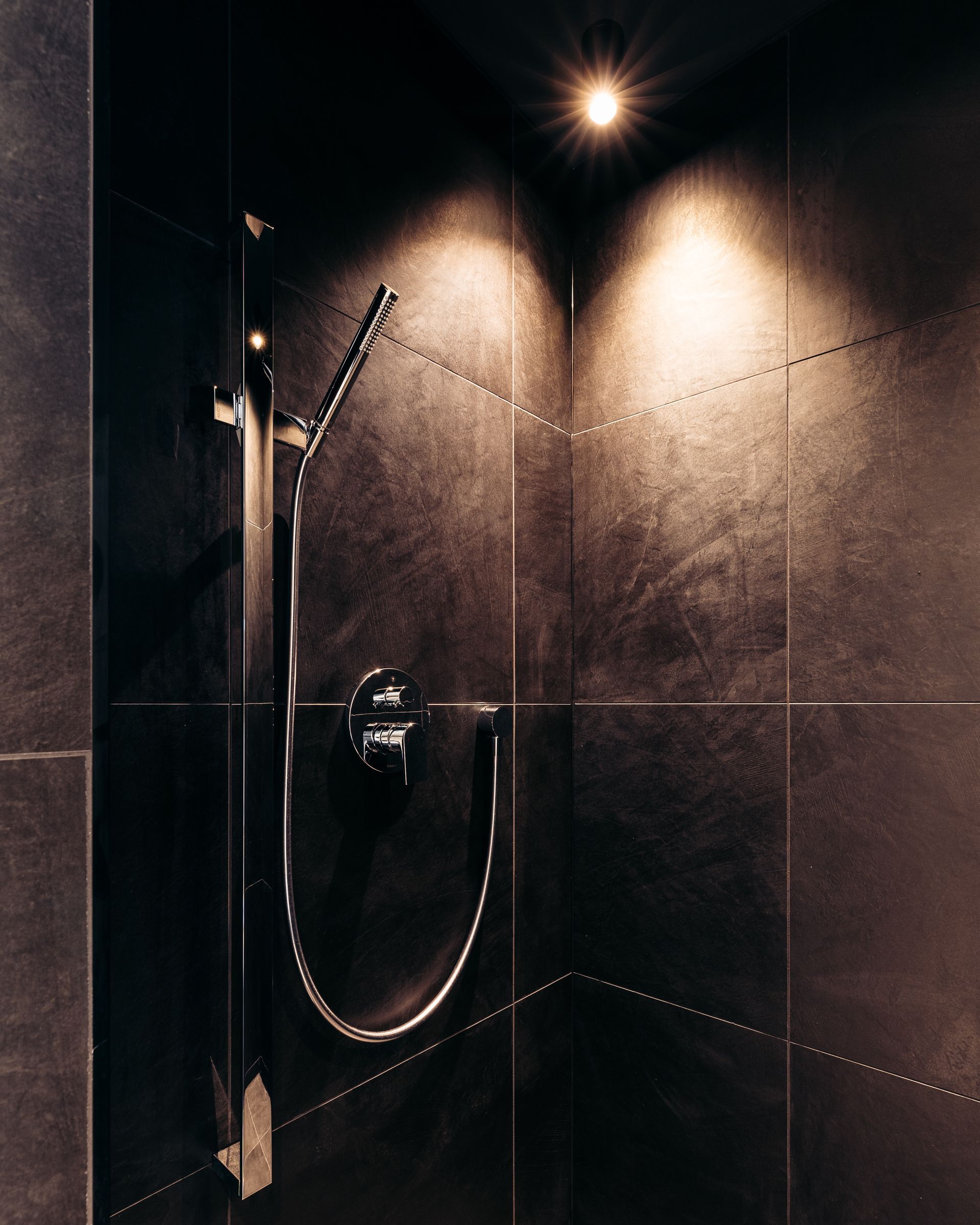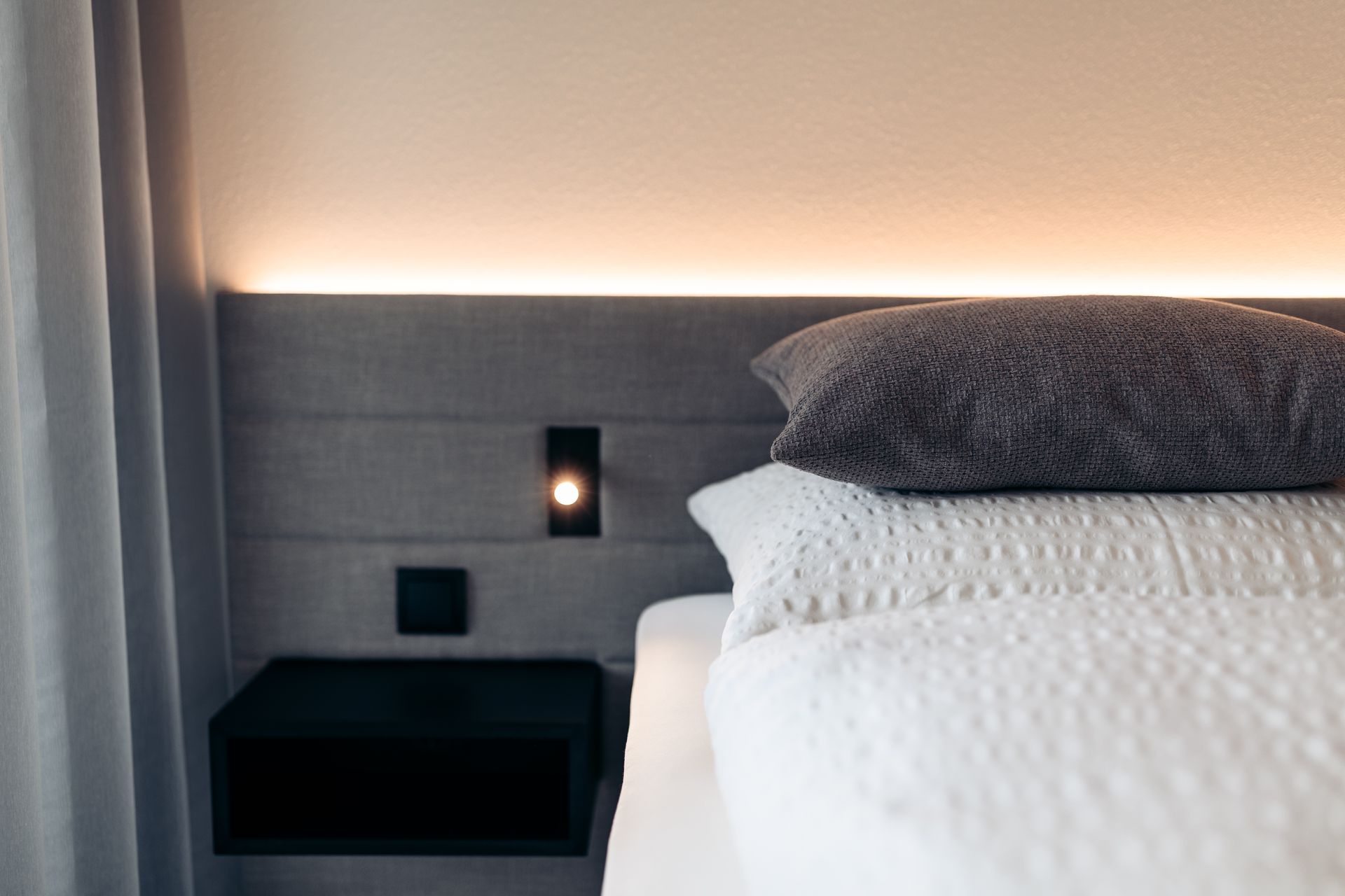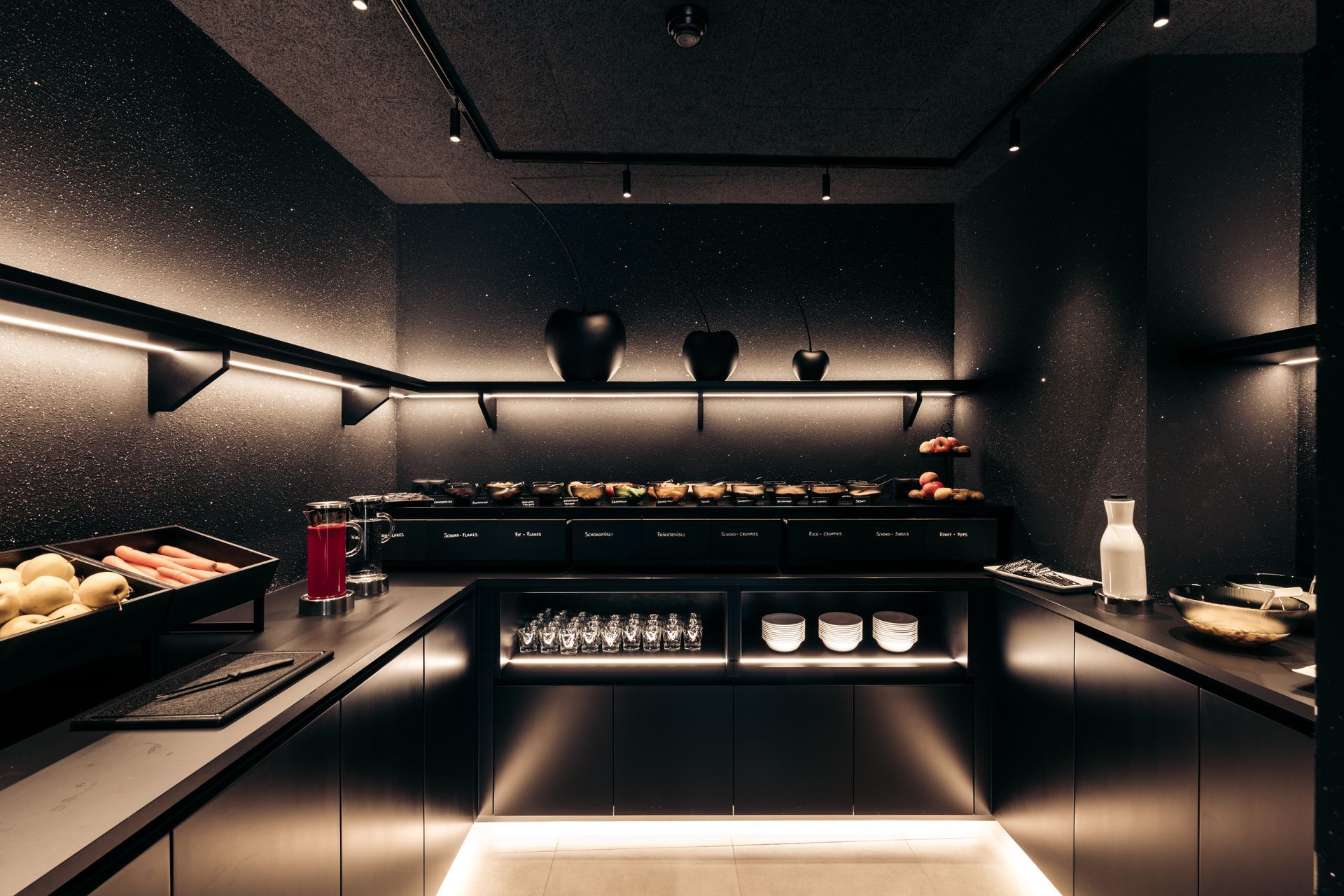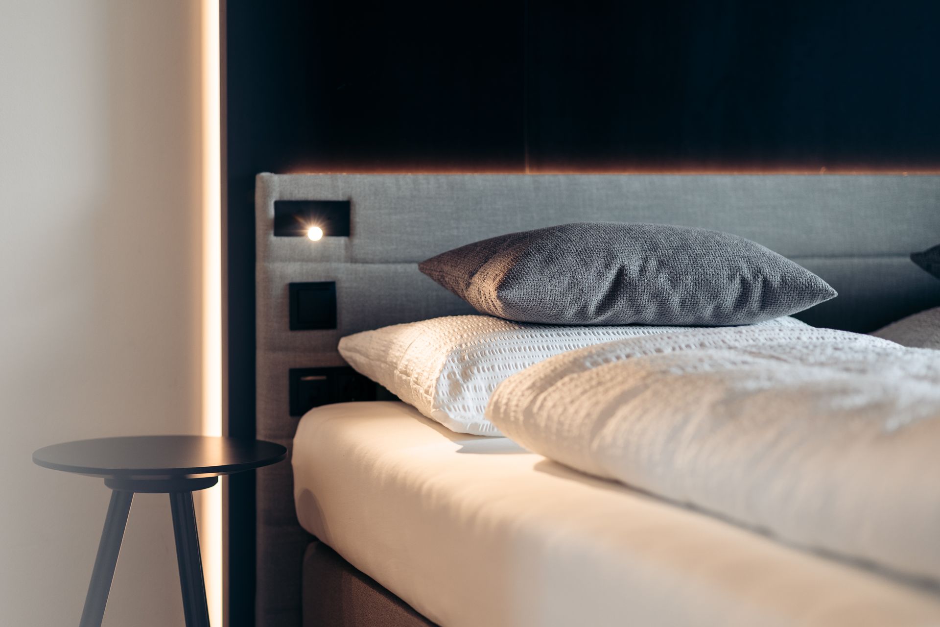 ... des öffentlichen bereiches und der zimmer in linearer formensprache und zeitlosen schwarz, weiss farben.