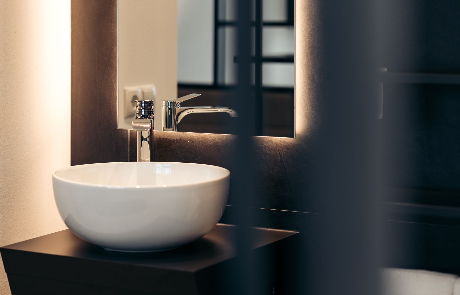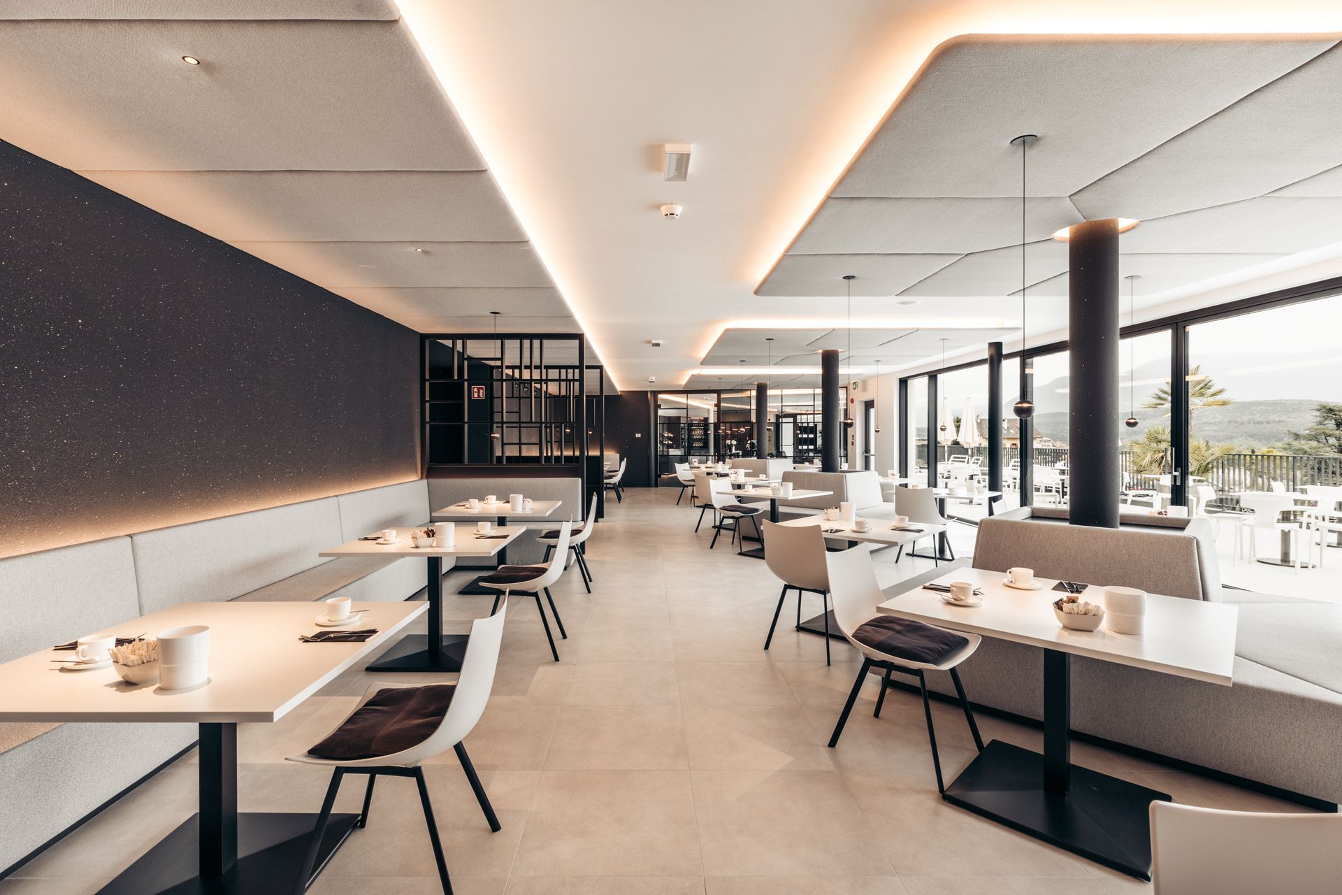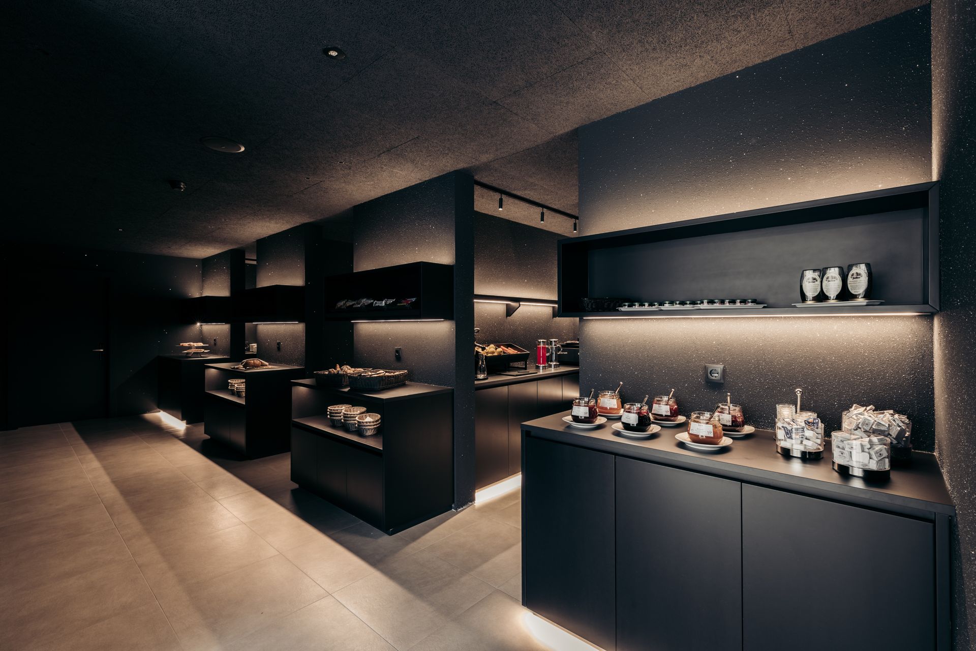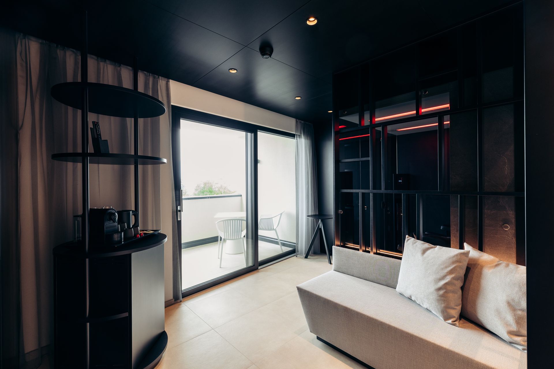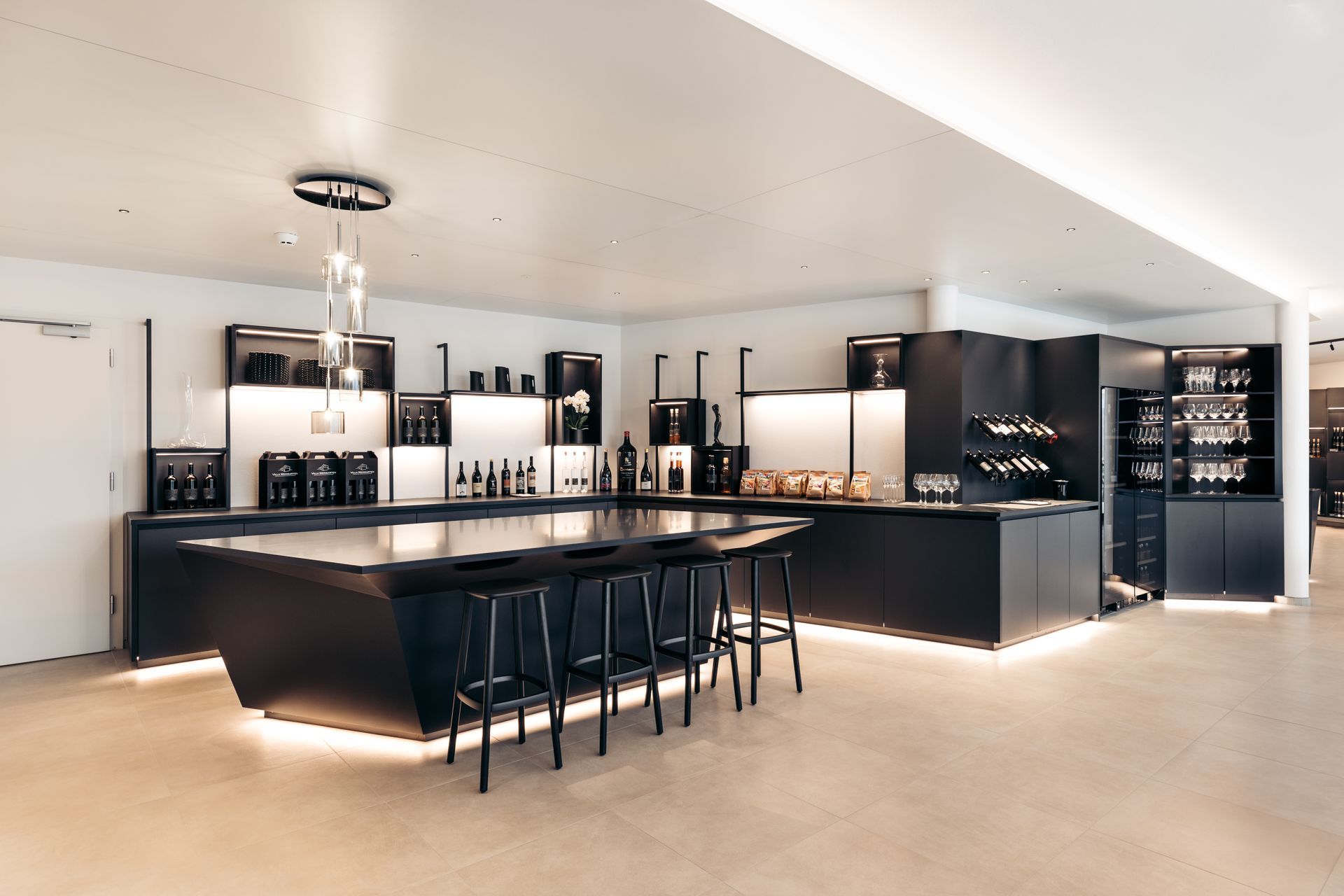 ... des öffentlichen bereiches und der zimmer in linearer formensprache und zeitlosen schwarz, weiss farben.