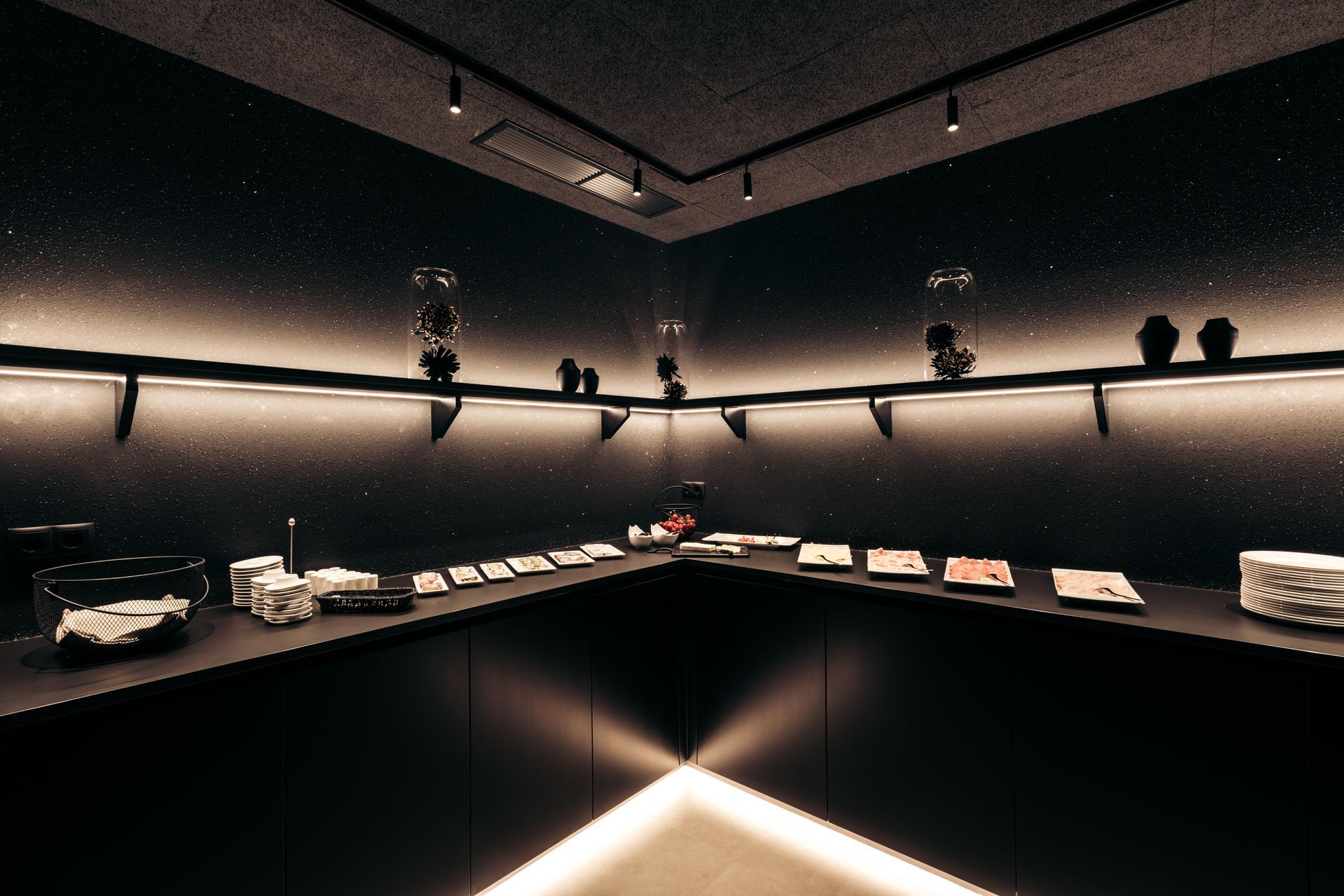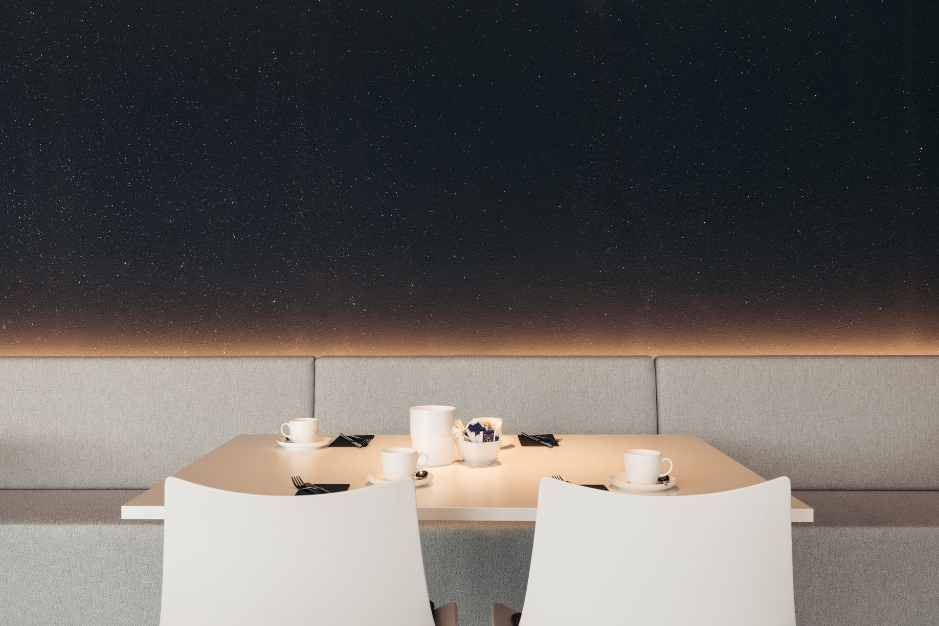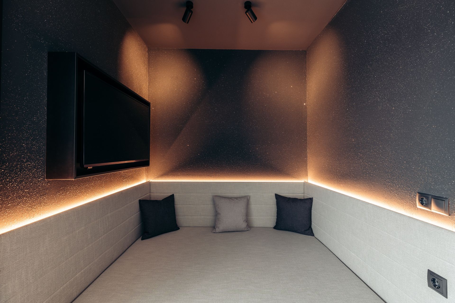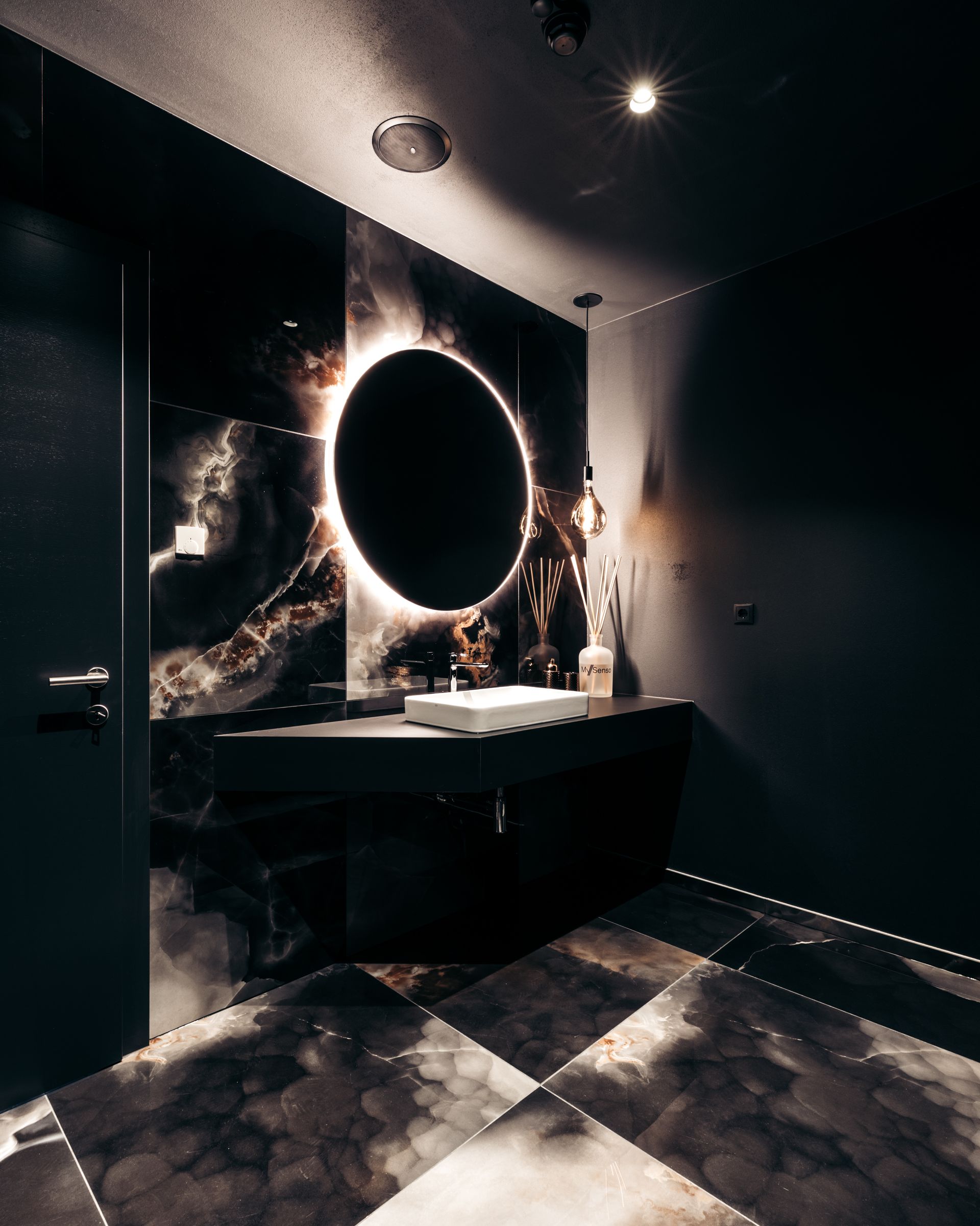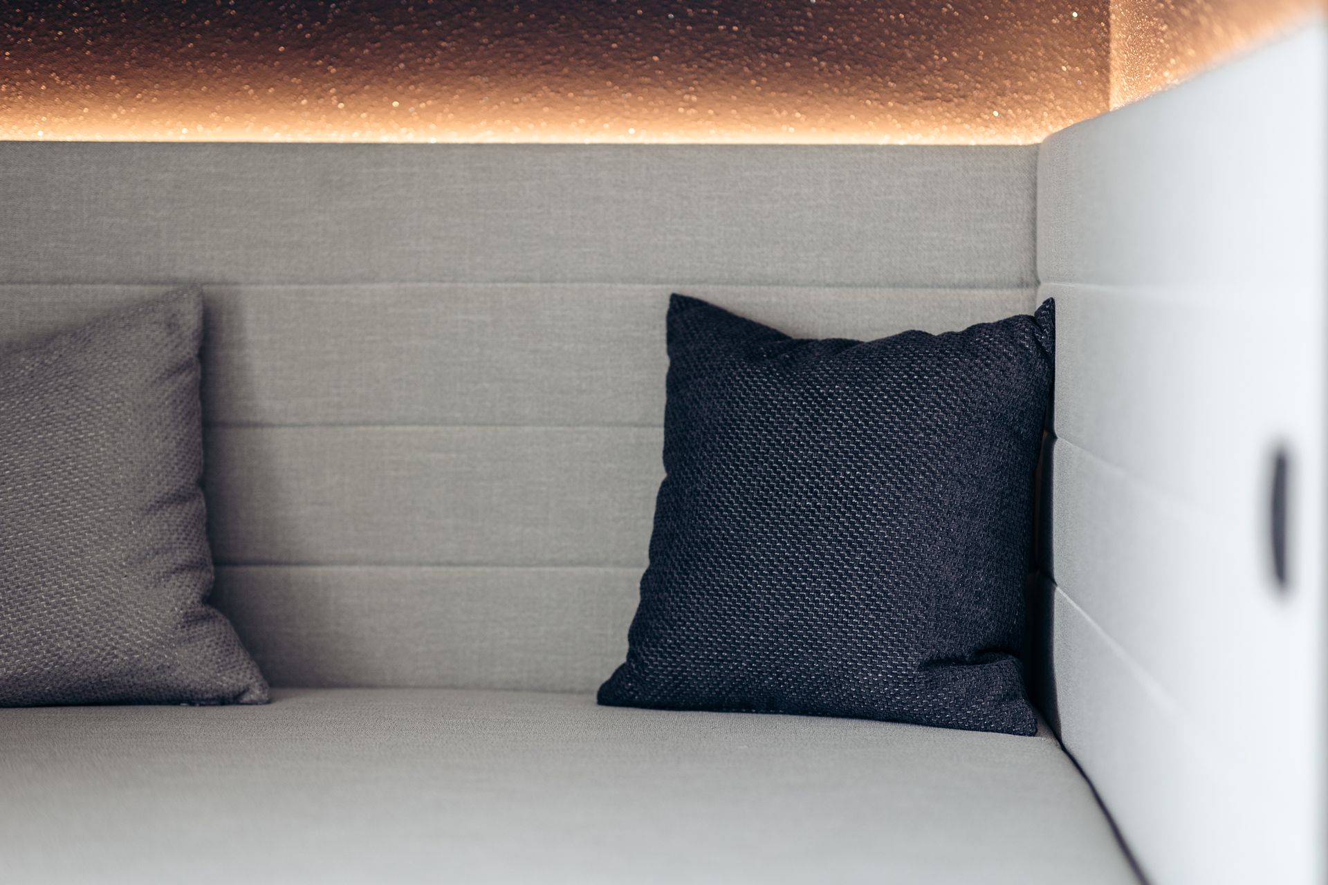 ... des öffentlichen bereiches und der zimmer in linearer formensprache und zeitlosen schwarz, weiss farben.