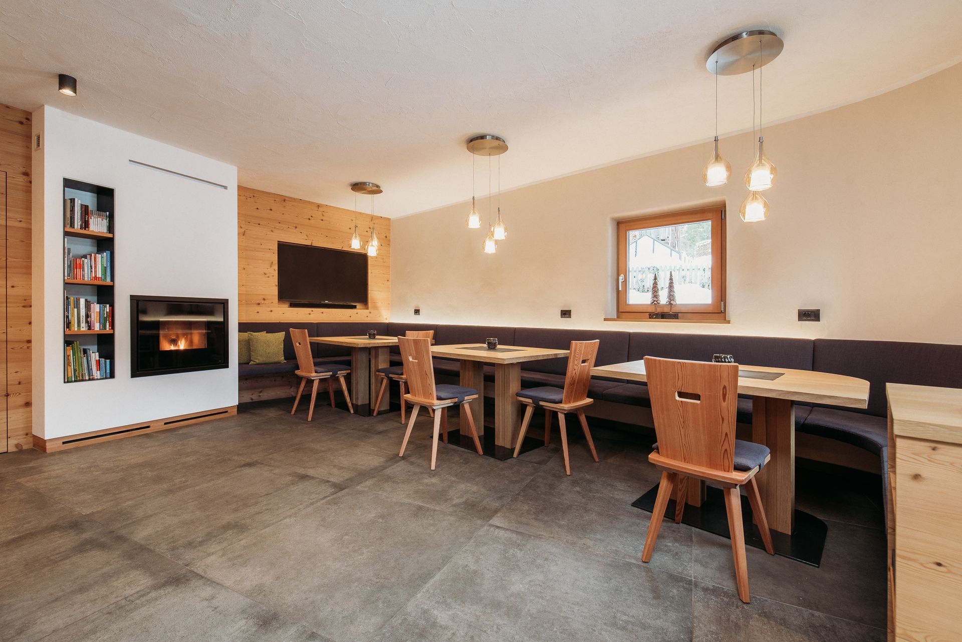 eines frühstück- und aufenthaltsraumes auf dem bauernhof der marke roter hahn